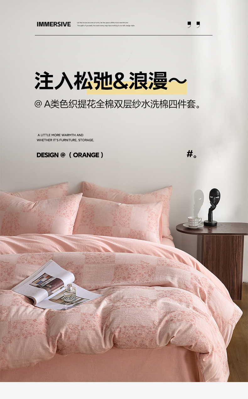 (总)如一 2026新款A类色织提花全棉双层纱水洗棉四件套,序章蓝,序章粉,序章绿,蝶漫粉,蝶漫灰,蝶漫咖,蝶漫绿,浮光粉,浮光灰,浮光咖,浮光绿,花忆粉,花忆灰,花忆绿,骏影黑,骏影蓝,骏影绿,兰序咖,兰序蓝,兰序绿,兰序紫,叶笙粉,叶笙咖,叶笙绿