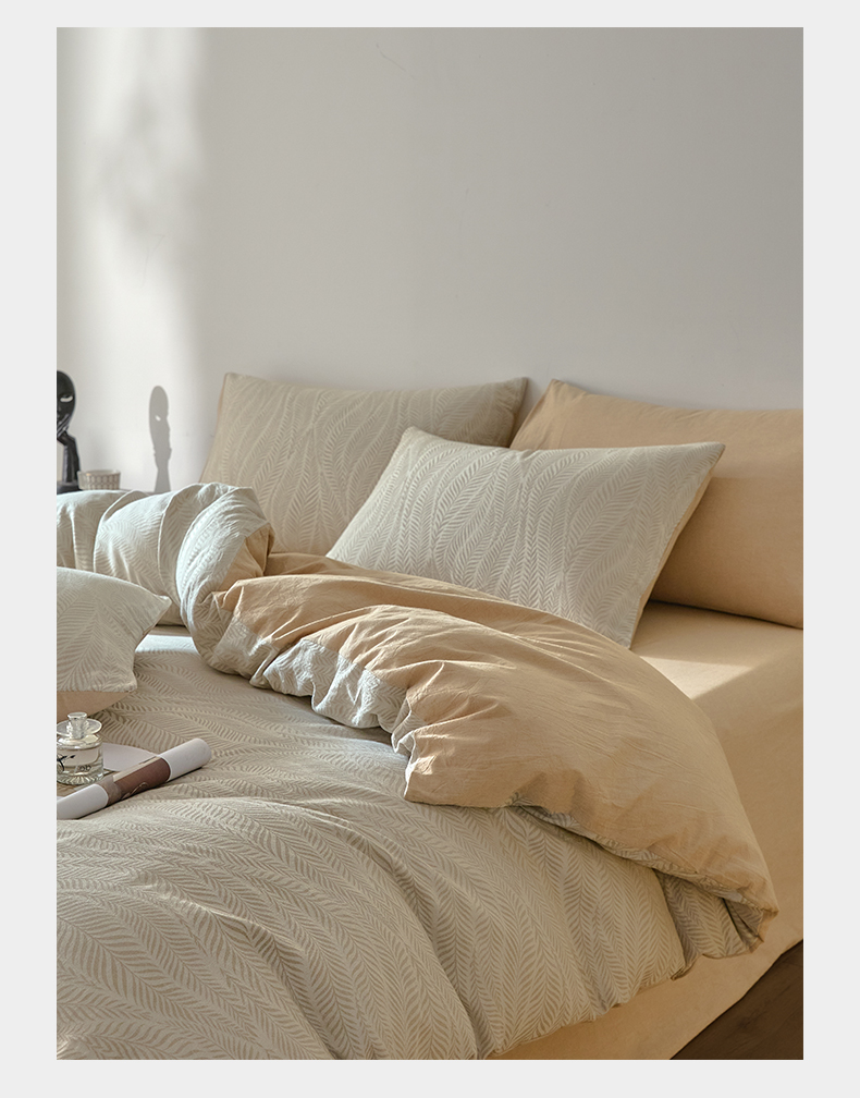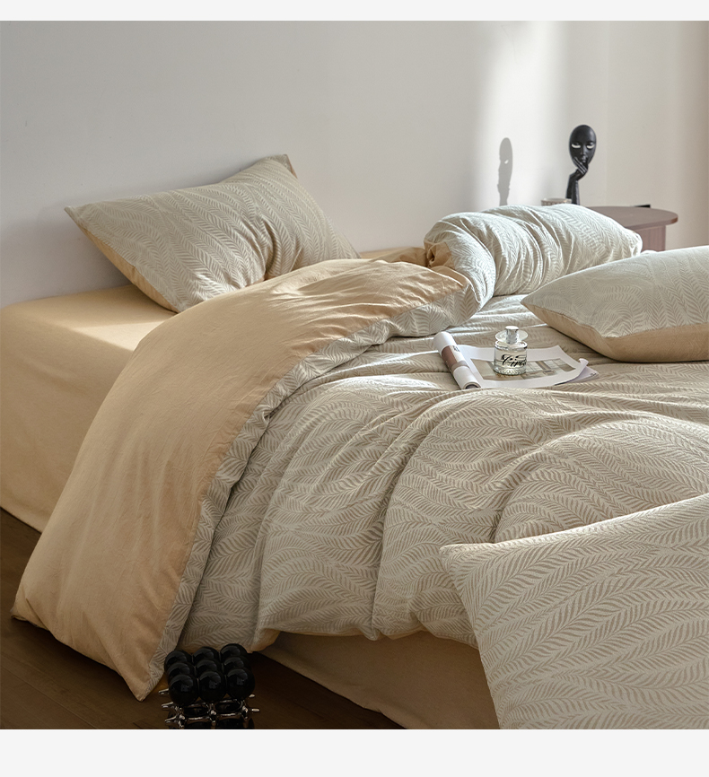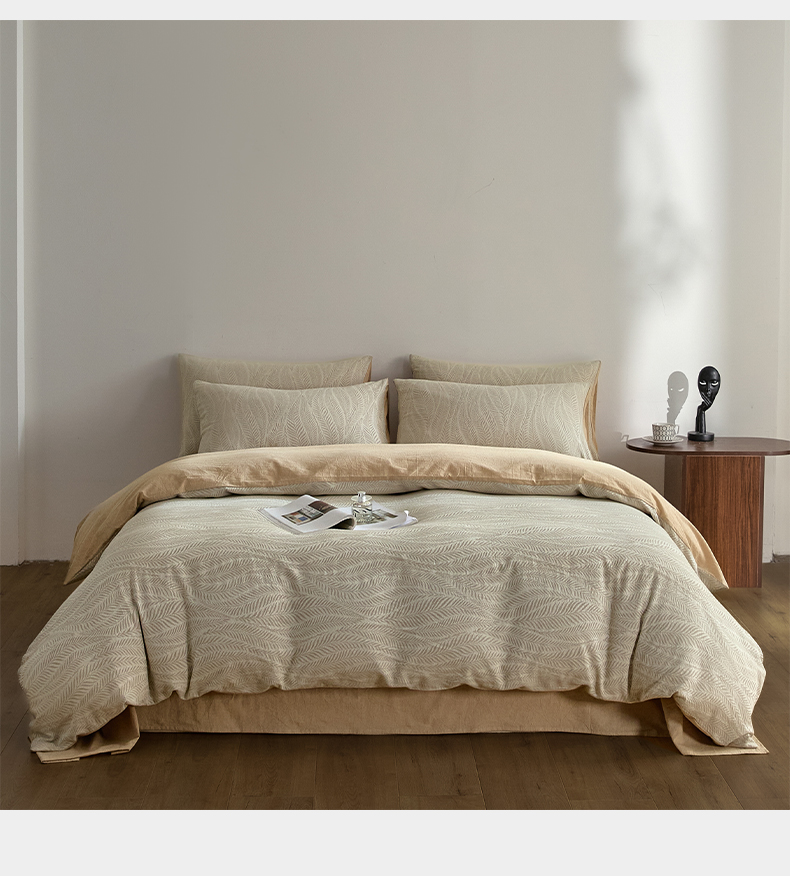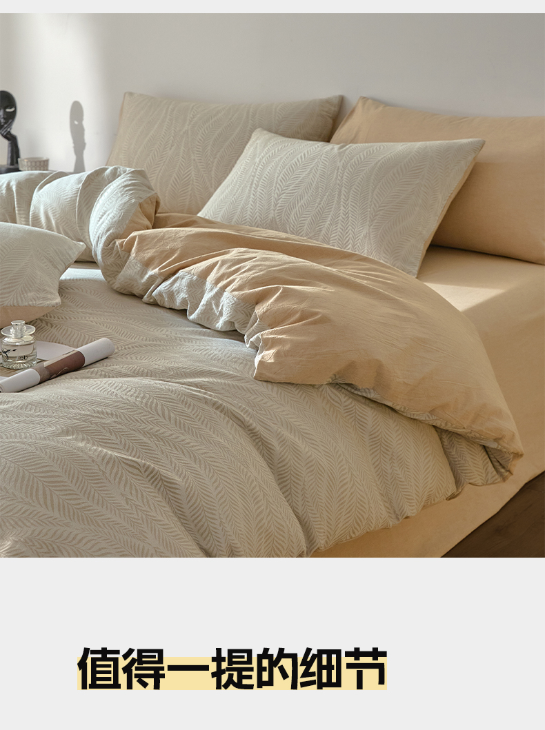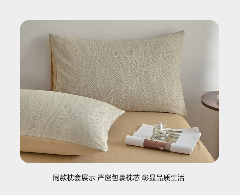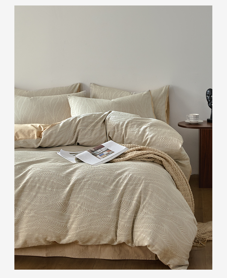 商品名称:如一 2026新款A类色织提花全棉双层纱水洗棉四件套 叶笙咖