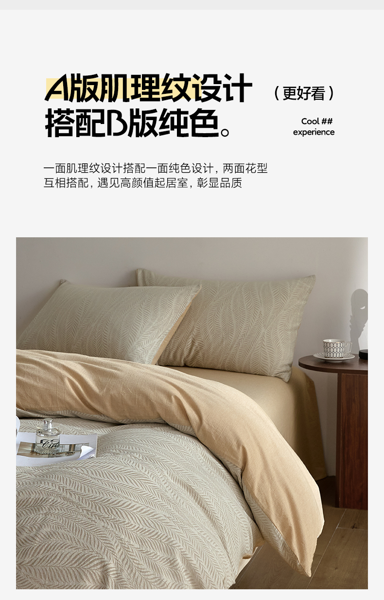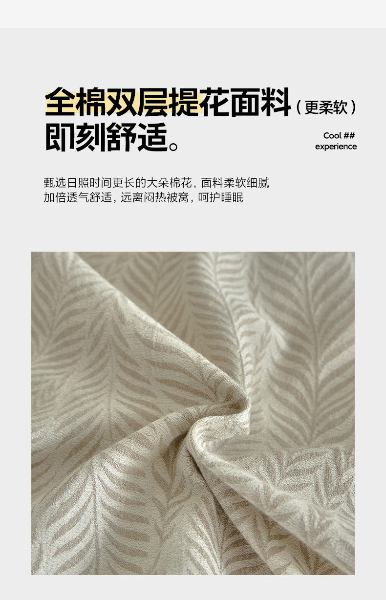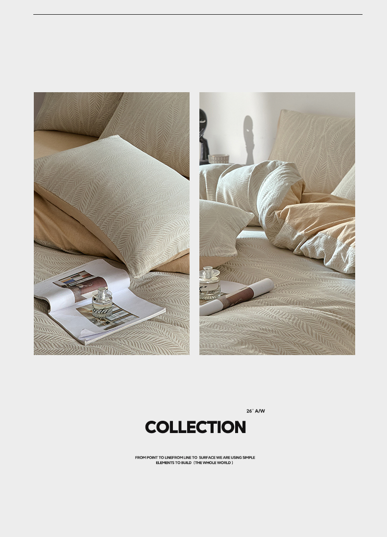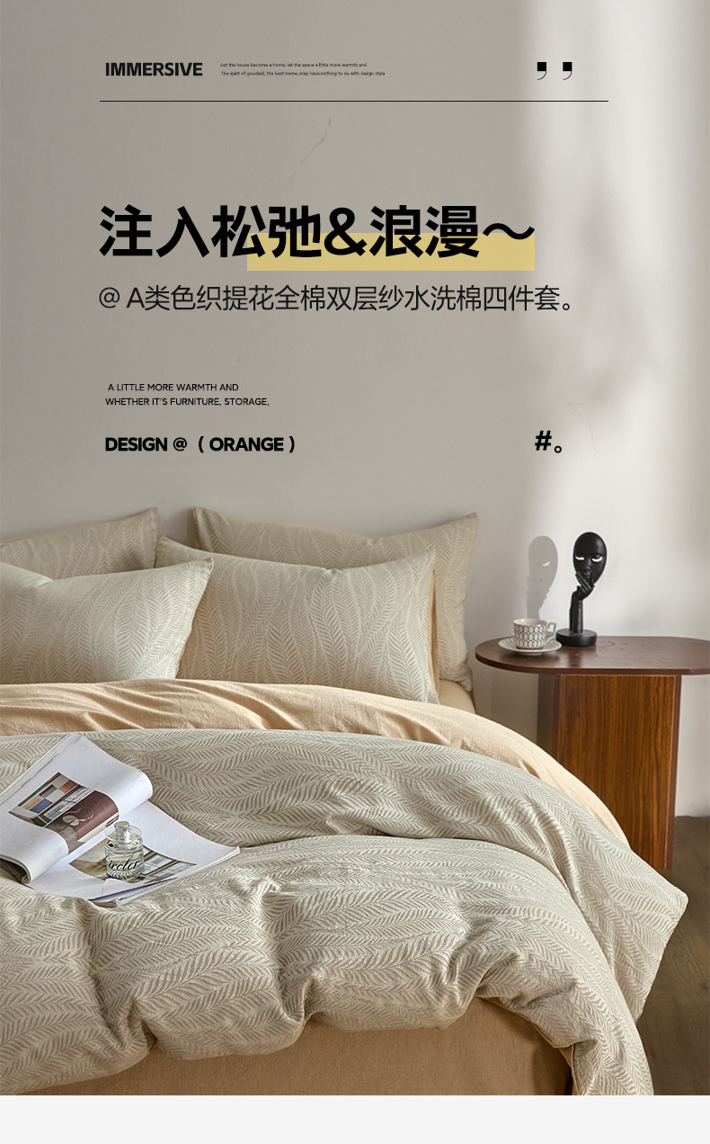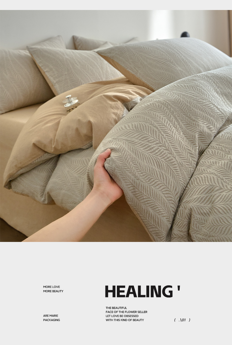 商品名称:如一 2026新款A类色织提花全棉双层纱水洗棉四件套 叶笙咖