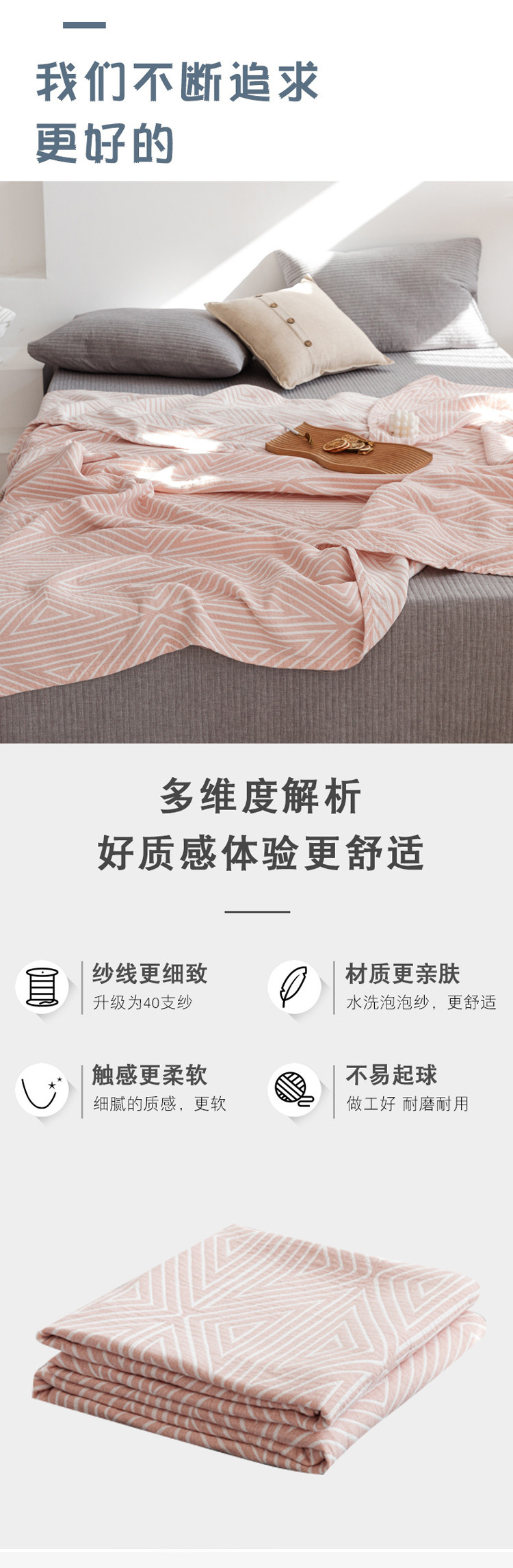 商品名称:朴尔 2020年新款加厚三层水洗棉全棉纱布毛巾被 等边三角-粉