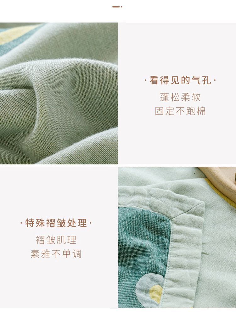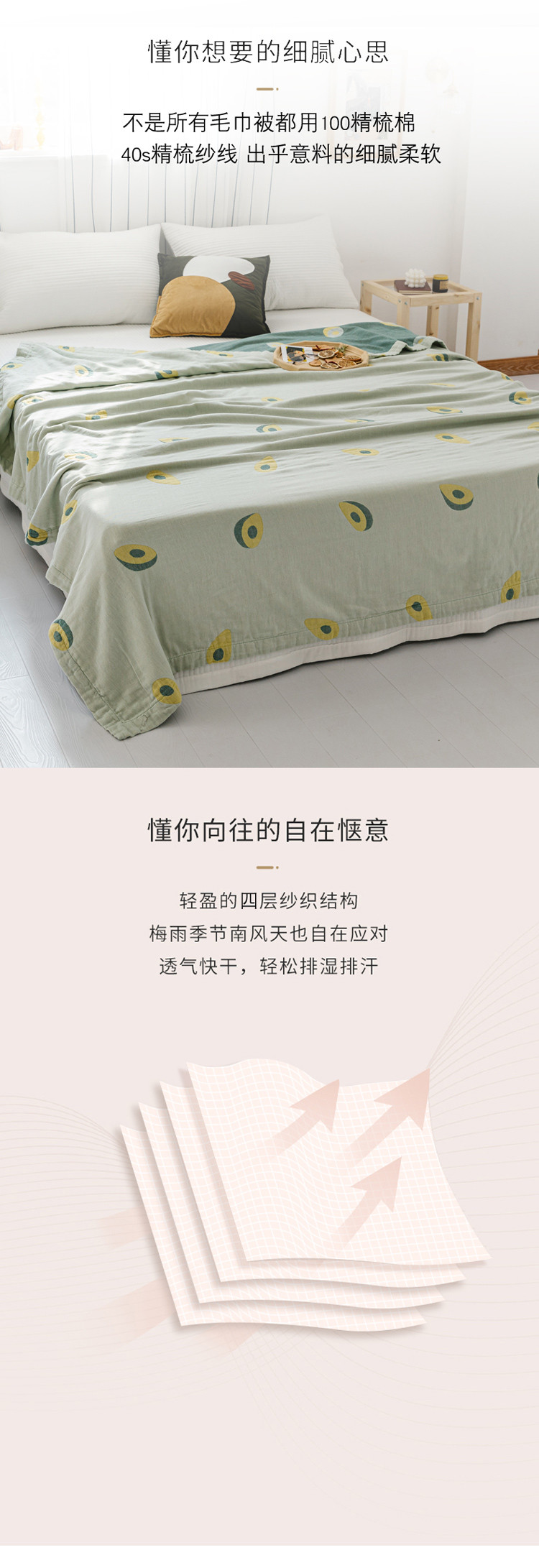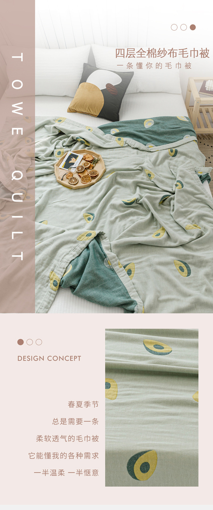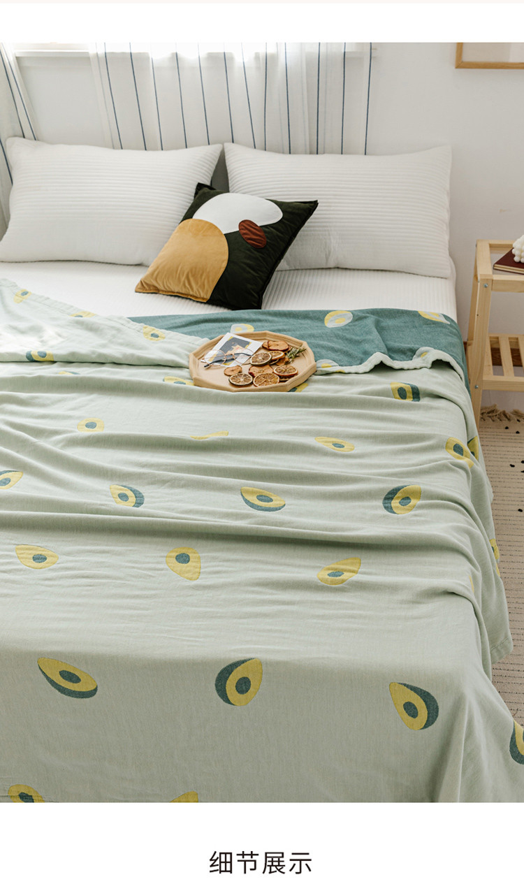 商品名称:朴尔 2020年新款水果系列四层纱布毛巾被 牛油果女孩-墨绿米