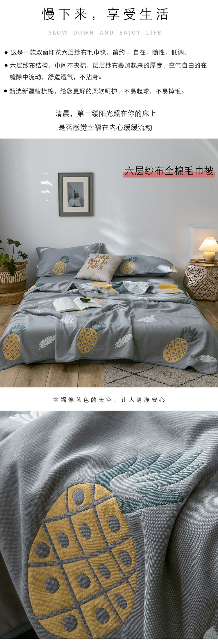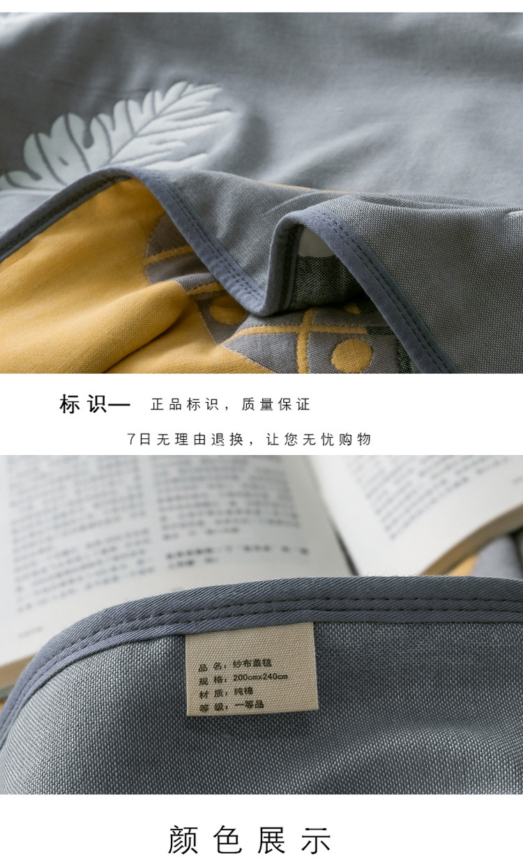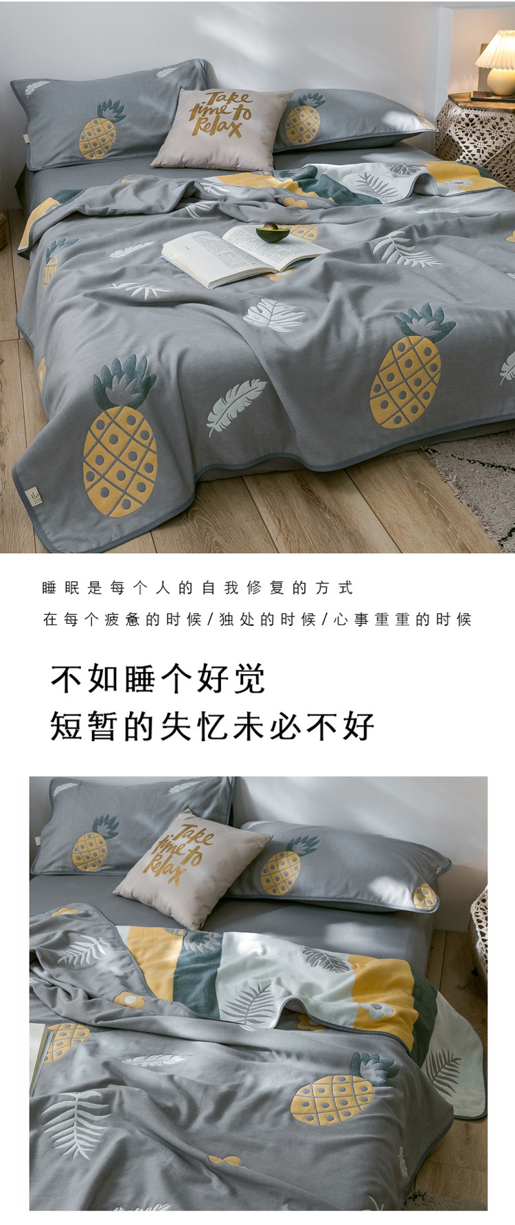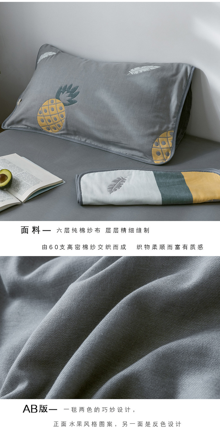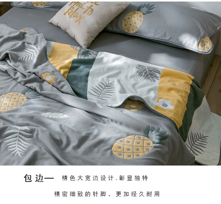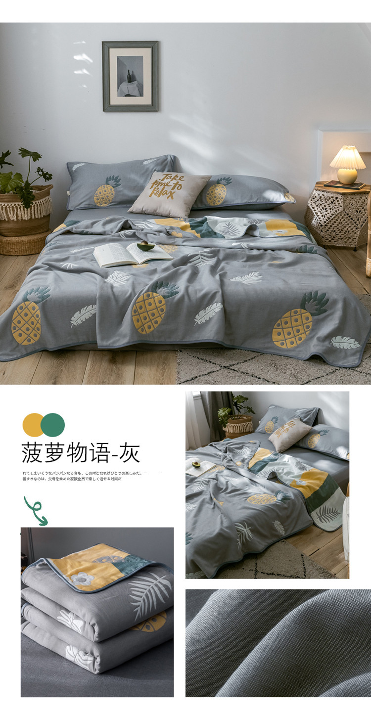 朴尔2020新款时尚六层全棉纱布盖毯夏季毛巾被 菠萝物语-灰