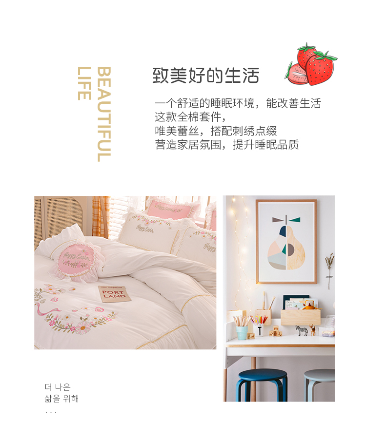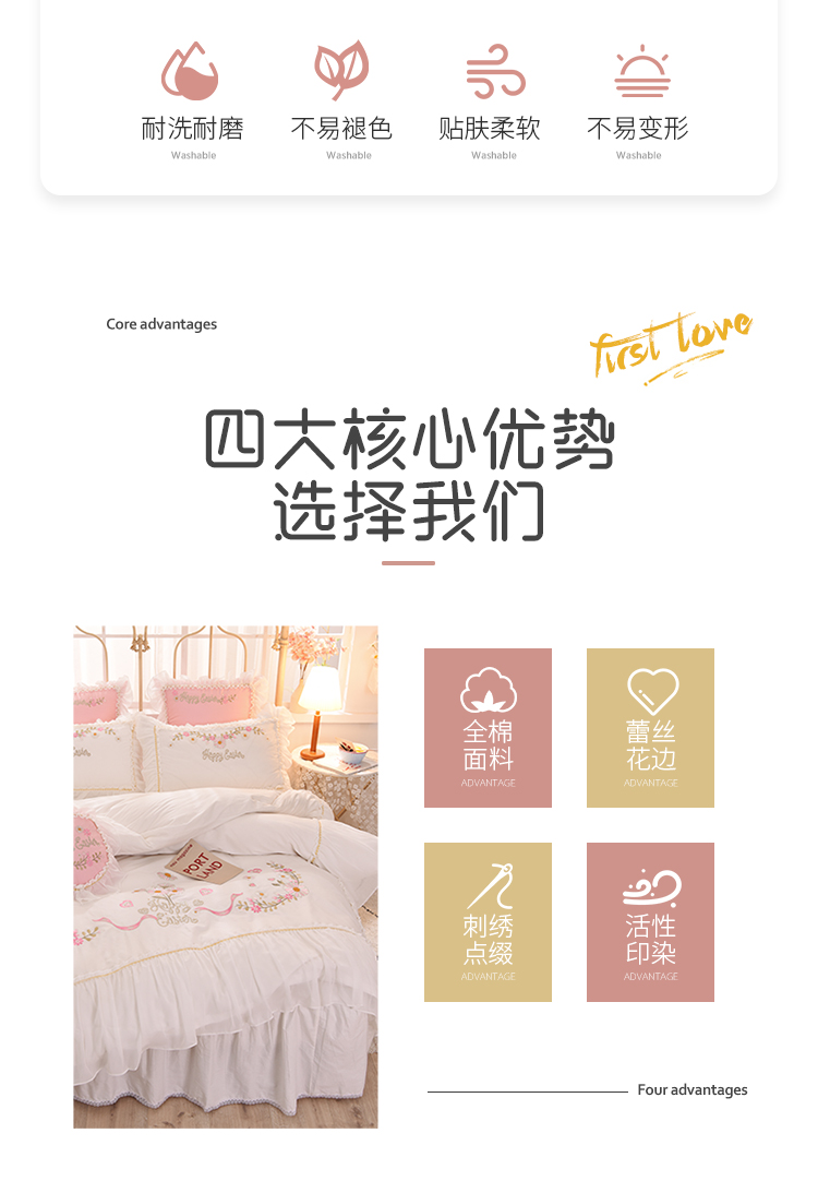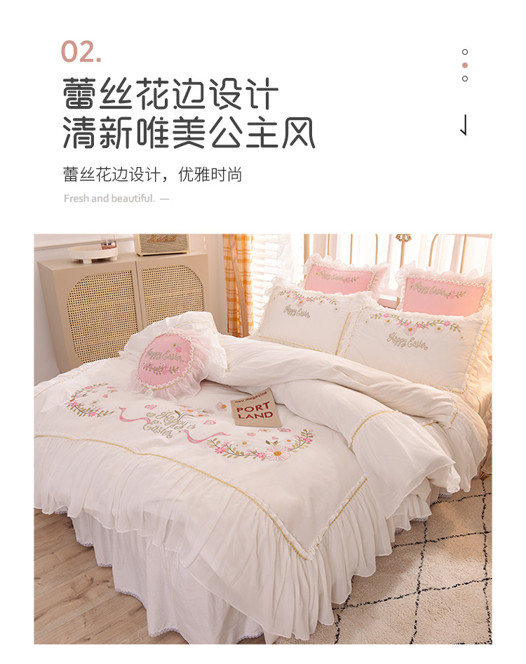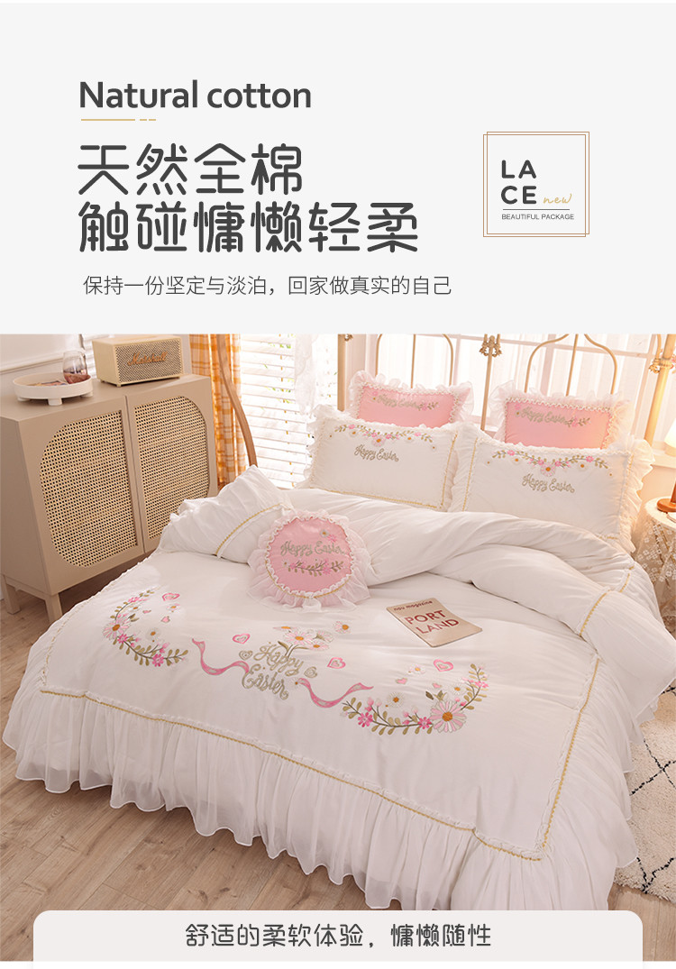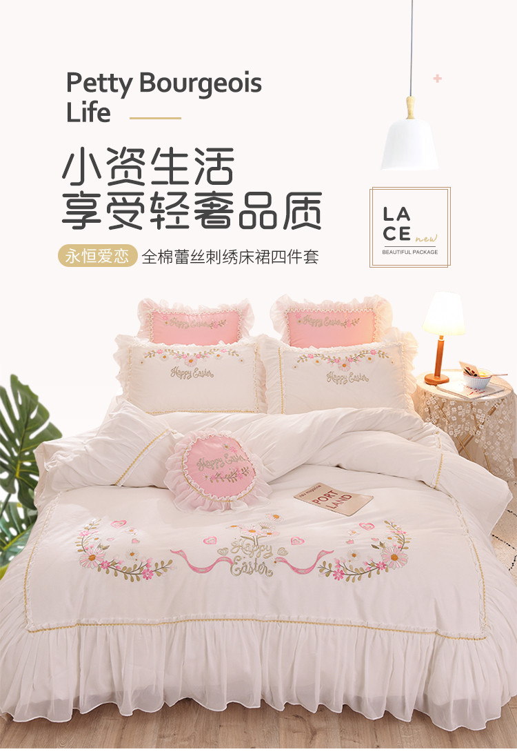 (总)迪欧芙 2024春季纯棉13372公主风四件套刺绣花边四件套爱的结语系列,爱的结语-白,爱的结语-粉,爱的结语-蓝