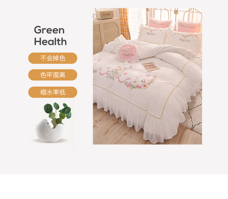 (总)迪欧芙 2023新款纯棉全棉水洗棉刺绣工艺款四件套-艾薇,艾薇-粉,艾薇-绿,艾薇-奶油白