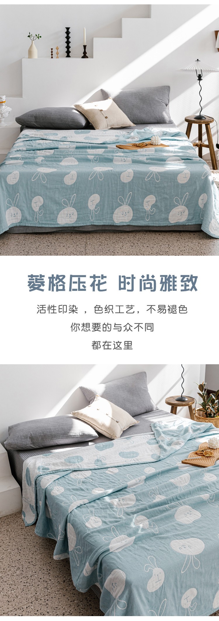 朴尔家纺 新款加厚三层水洗棉全棉纱布毛巾被 灵动兔-兰