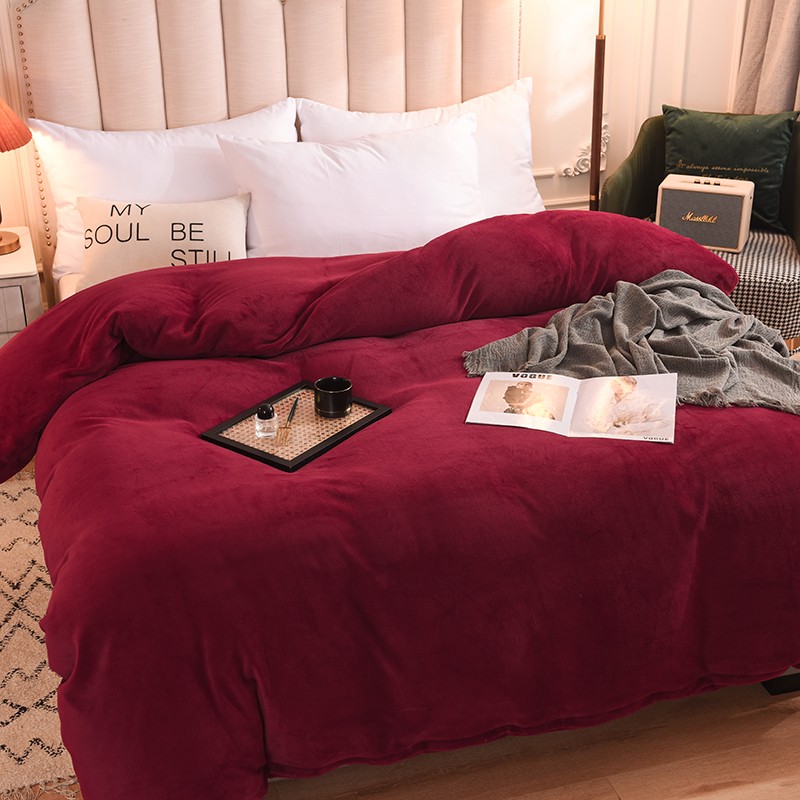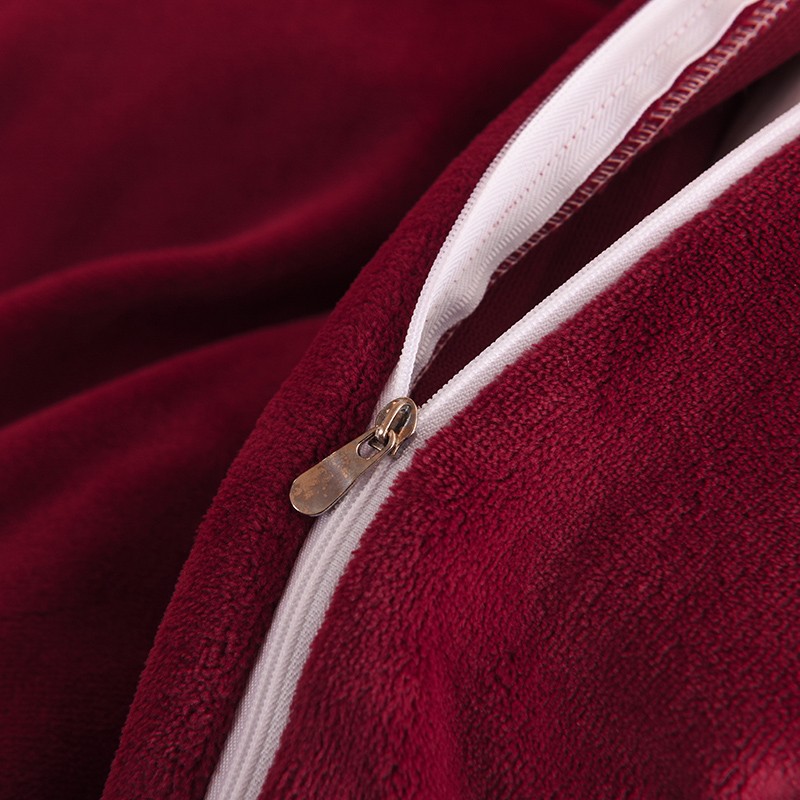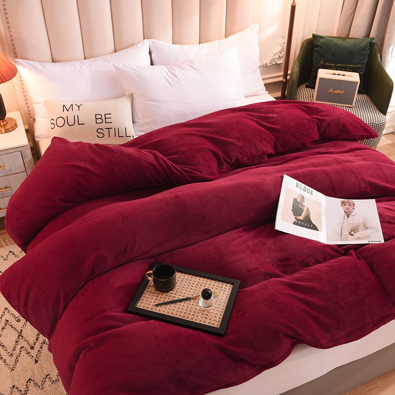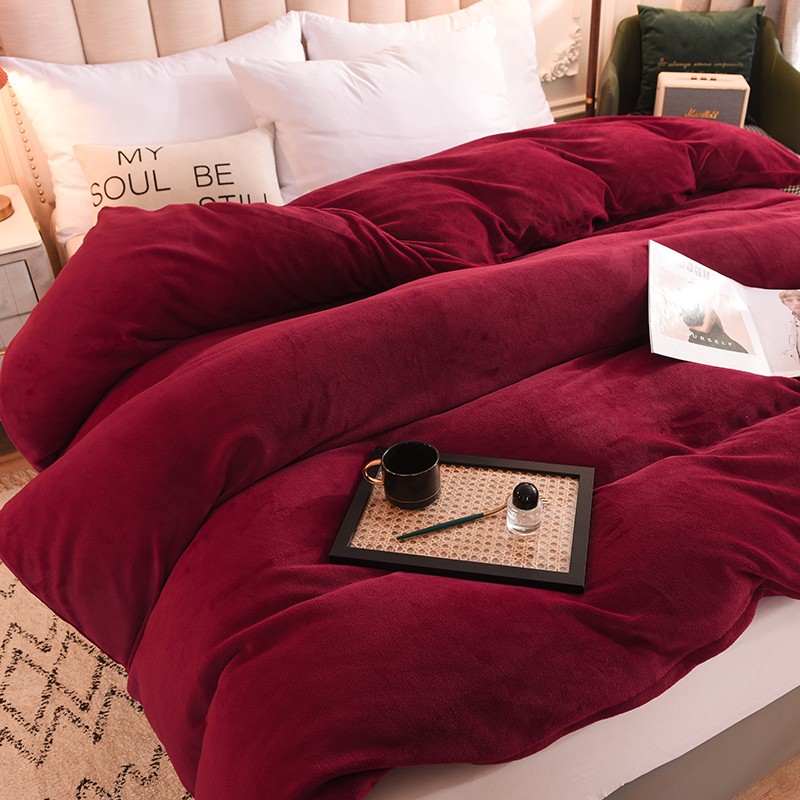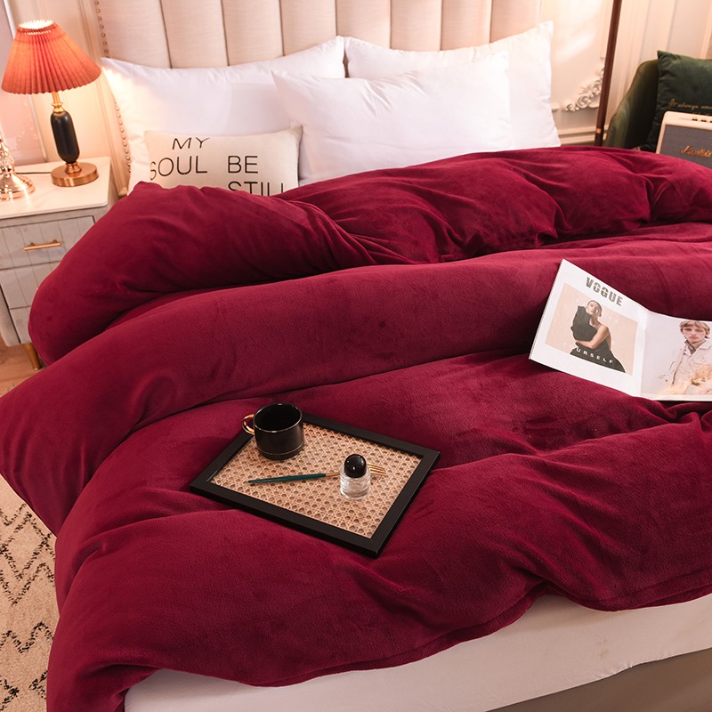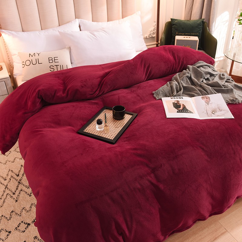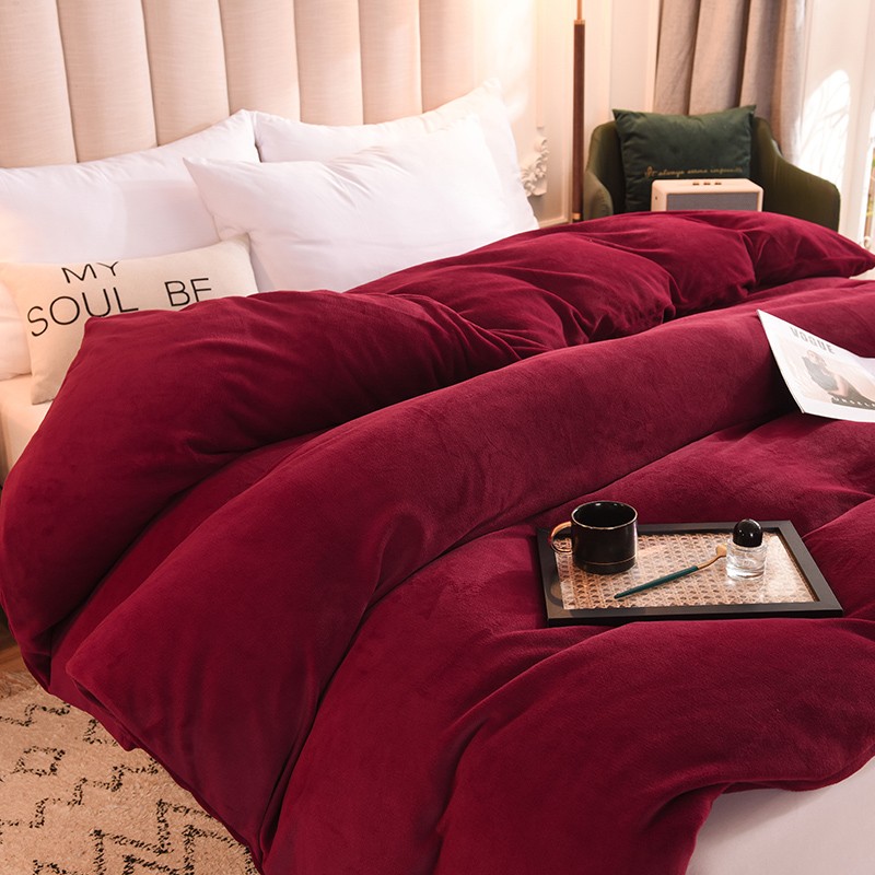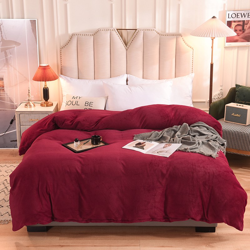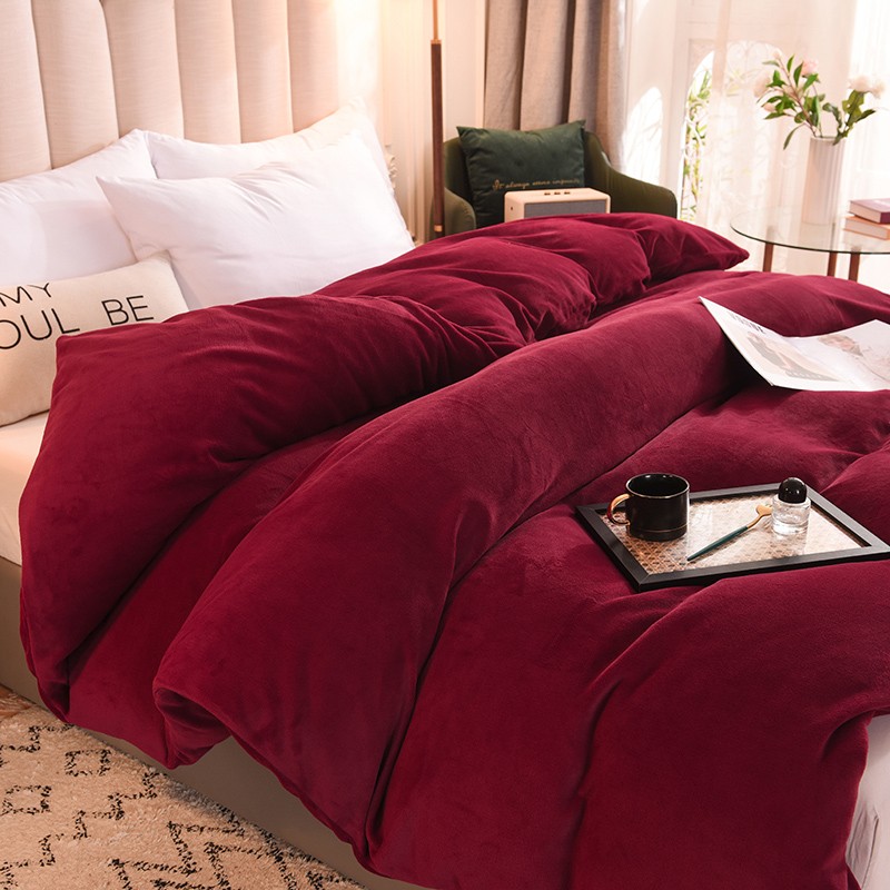 • 91家纺网 家纺一手货源 找家纺 甜之梦 2025牛奶绒纯色拼色单品四件套被套(可定制尺寸)洋酒红