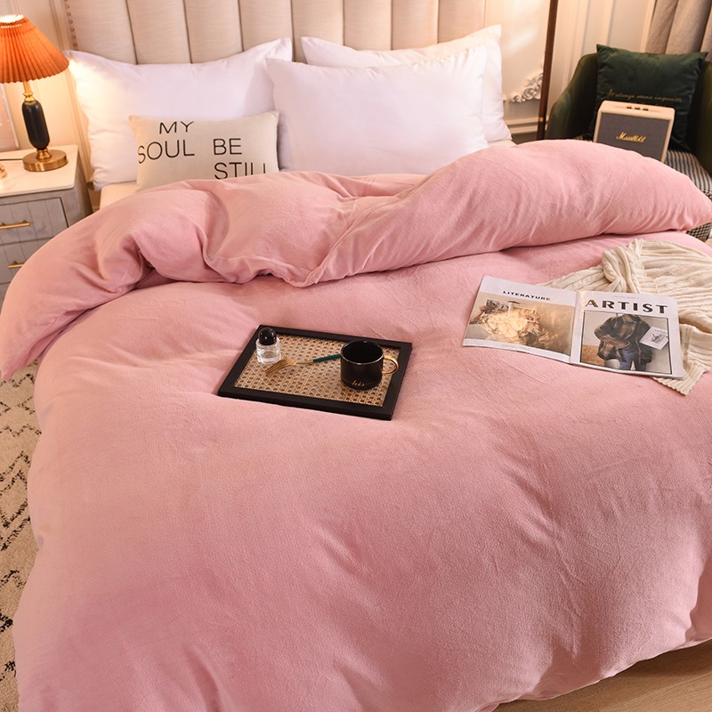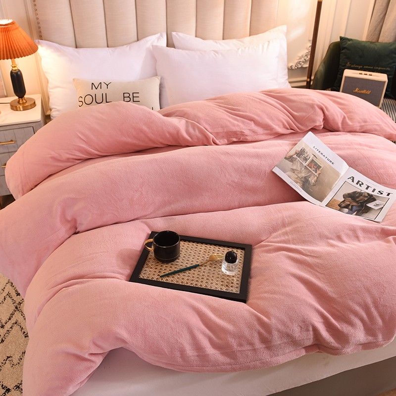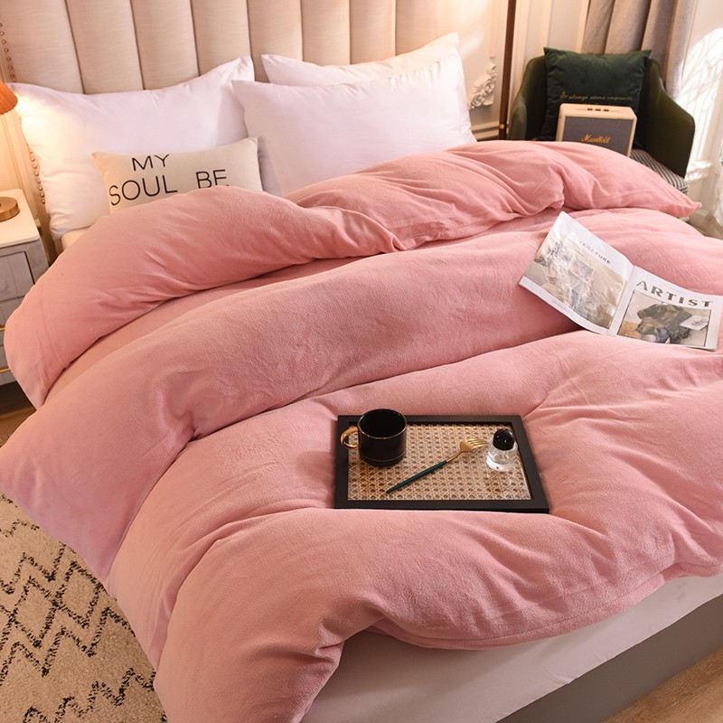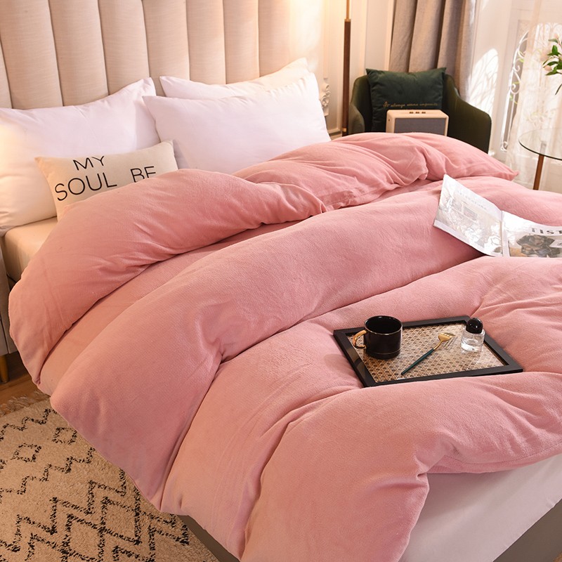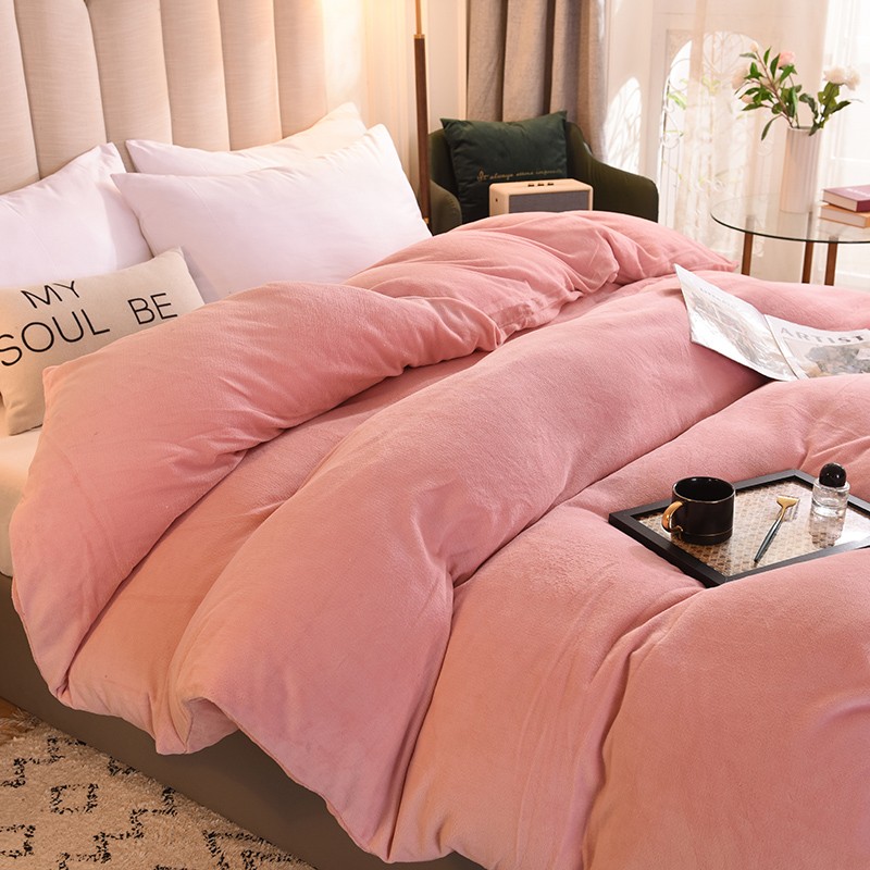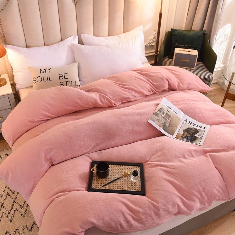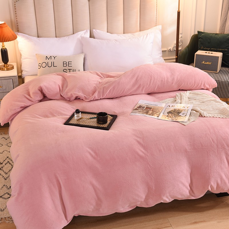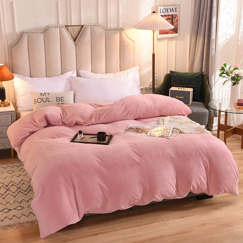 甜之梦 2025牛奶绒纯色拼色单品四件套被套(可定制尺寸)淡粉