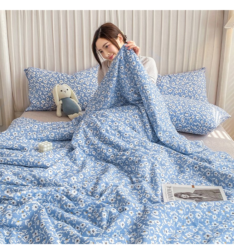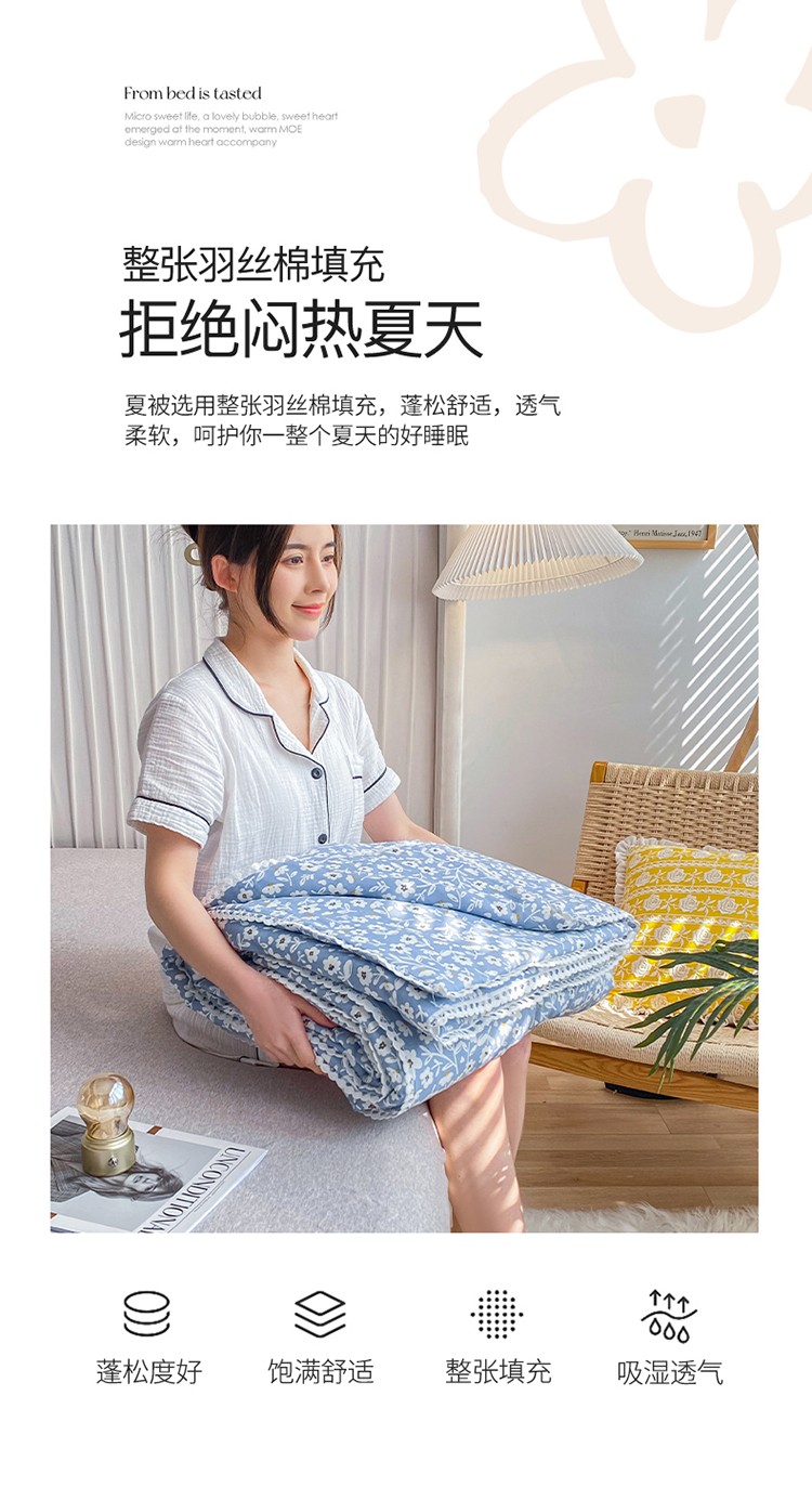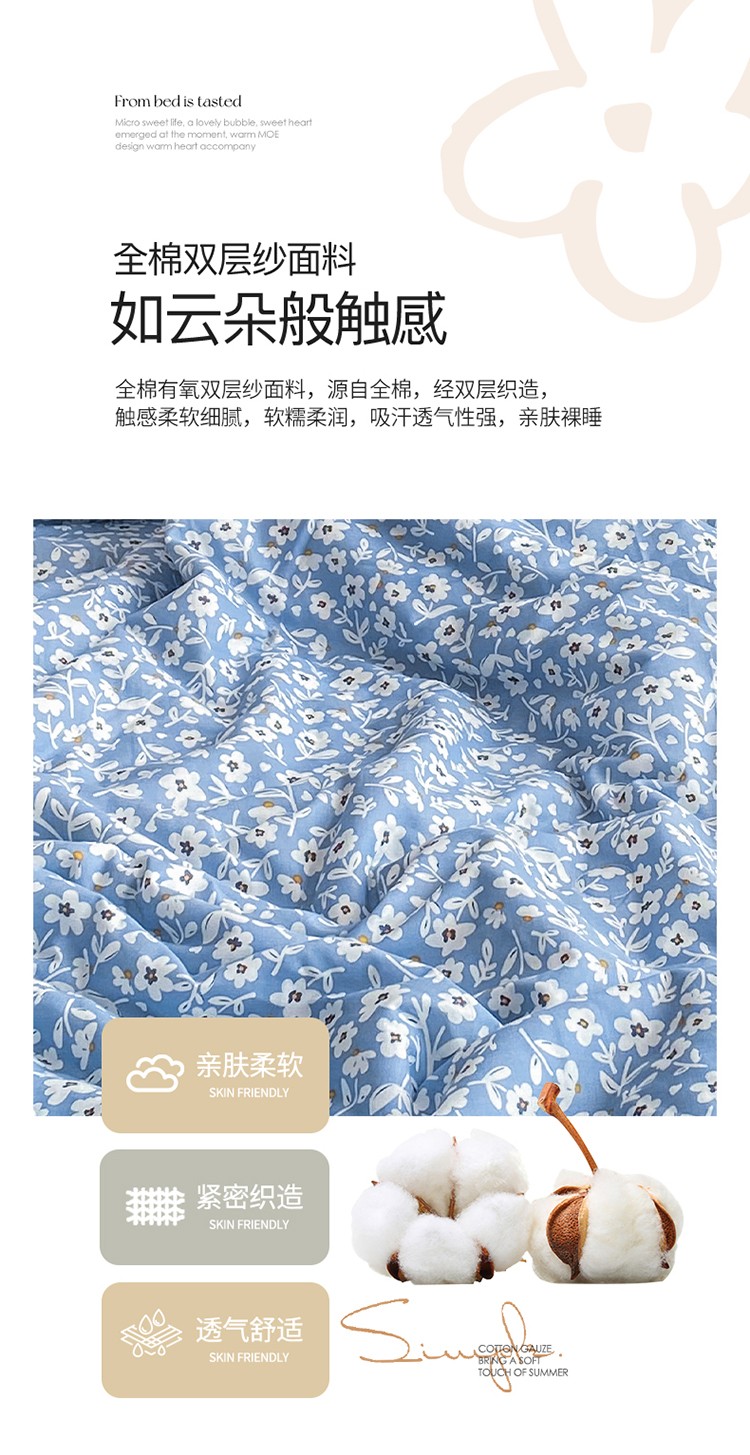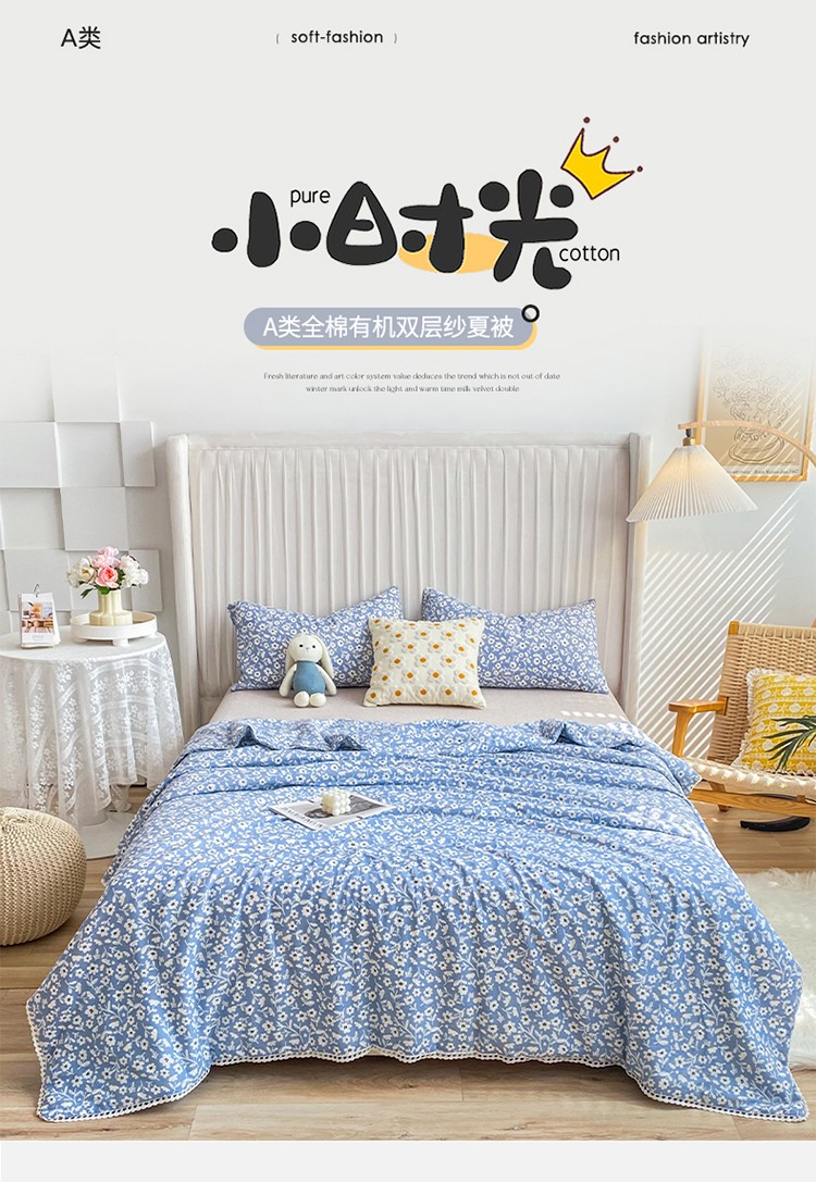 商品名称:吾秀家居 2022新款A类全棉有氧双层纱夏被 恬淡-蓝