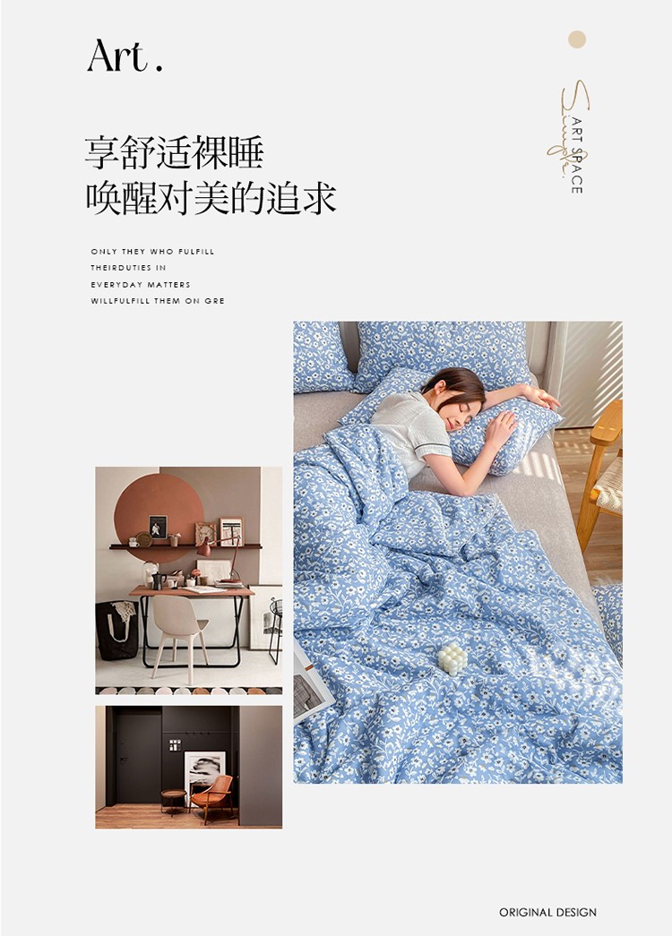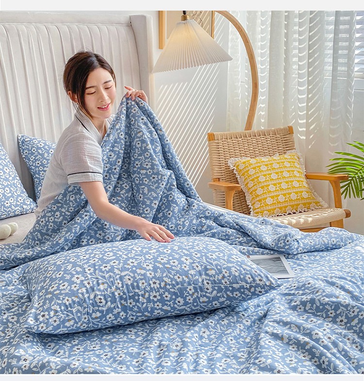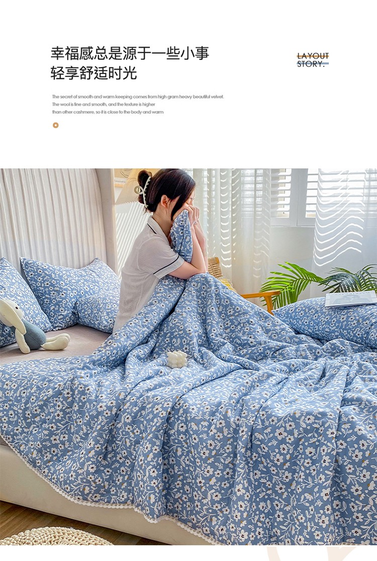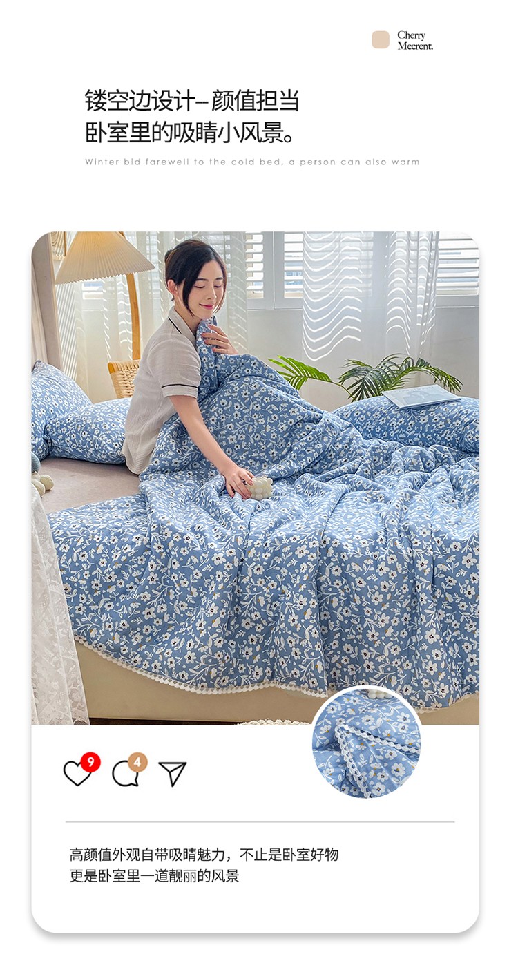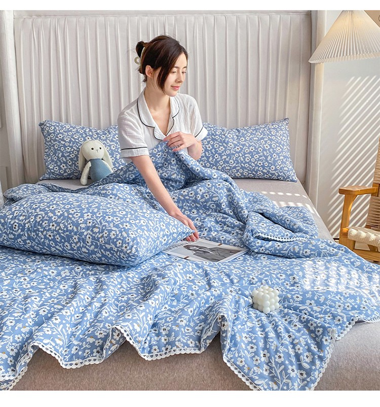商品名称:吾秀家居 2022新款A类全棉有氧双层纱夏被 恬淡-蓝