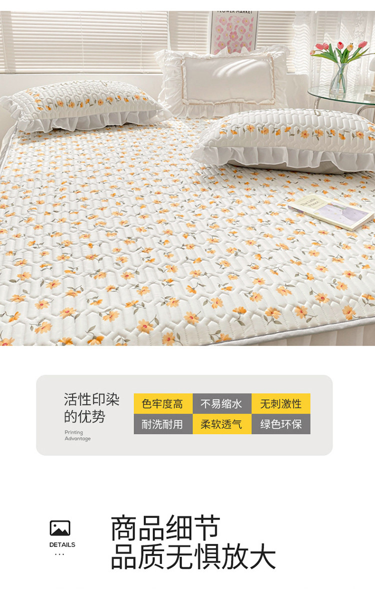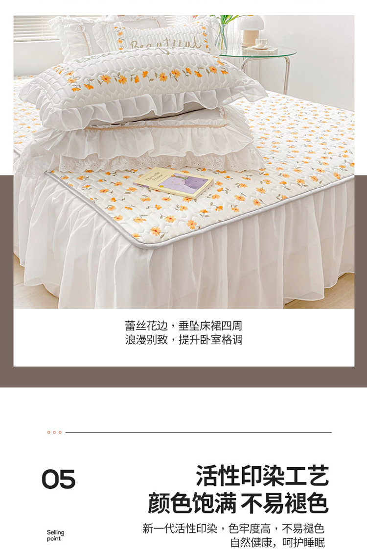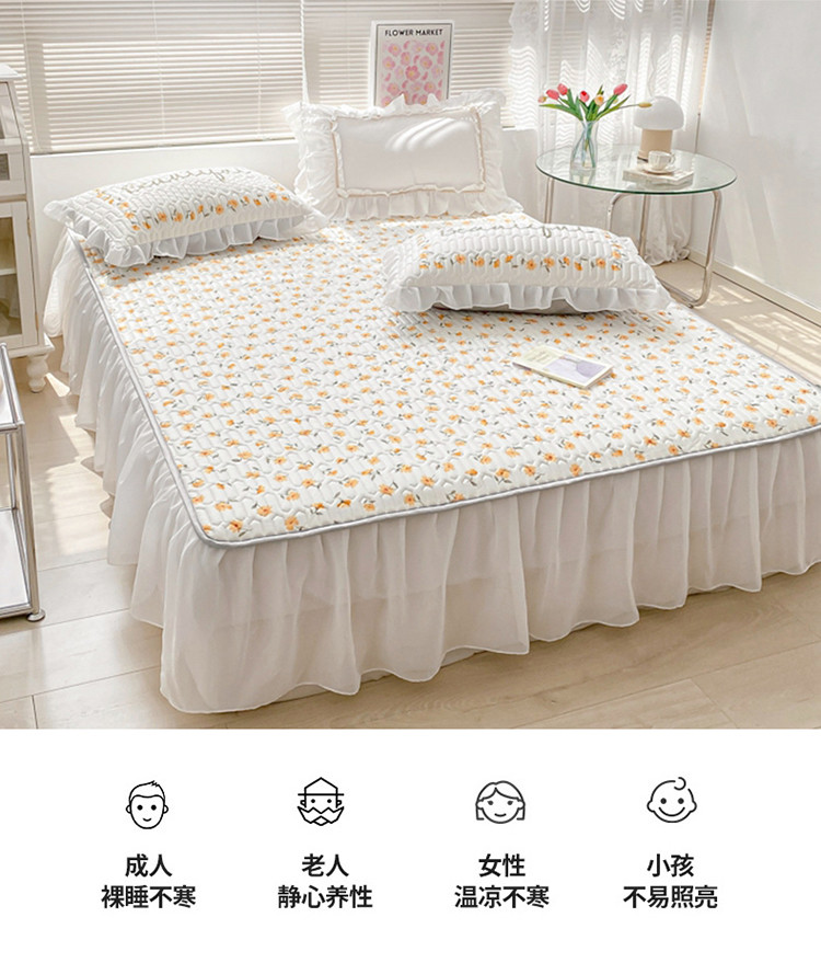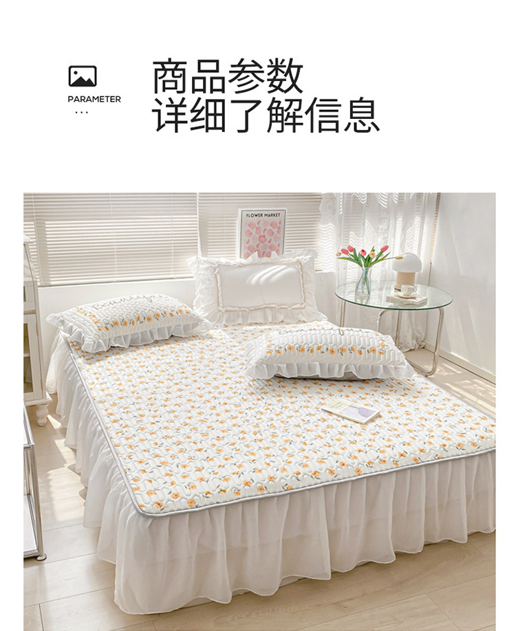商品名称:佰亿莱 2024新款韩版床裙款乳胶凉席三件套 幸运花