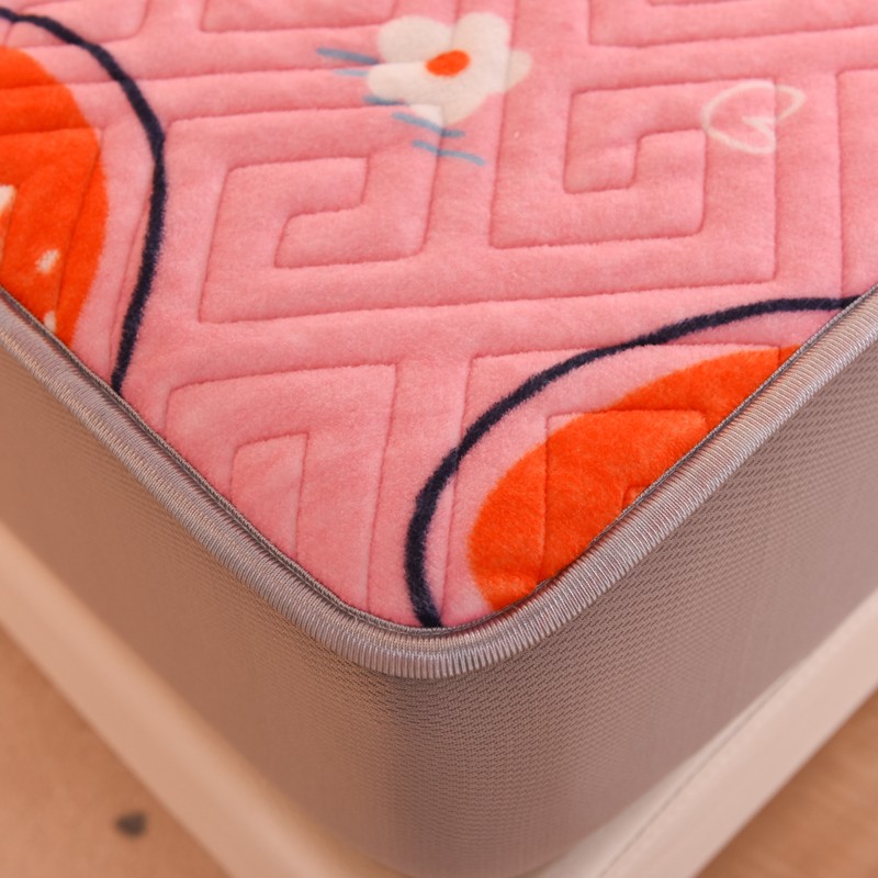 商品名称:甜之梦 2025新款牛奶绒印花夹棉花边系列单品床笠 粉红草莓
