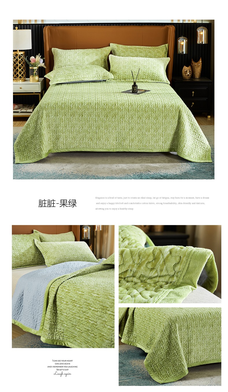 佳梦家纺轻奢提花绒四件套牛奶绒纯色消光压花宝宝绒被套 草绿,草绿