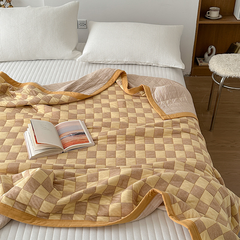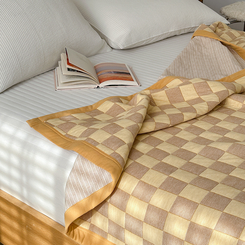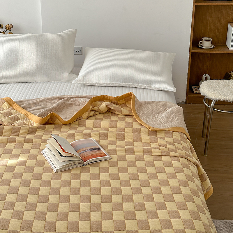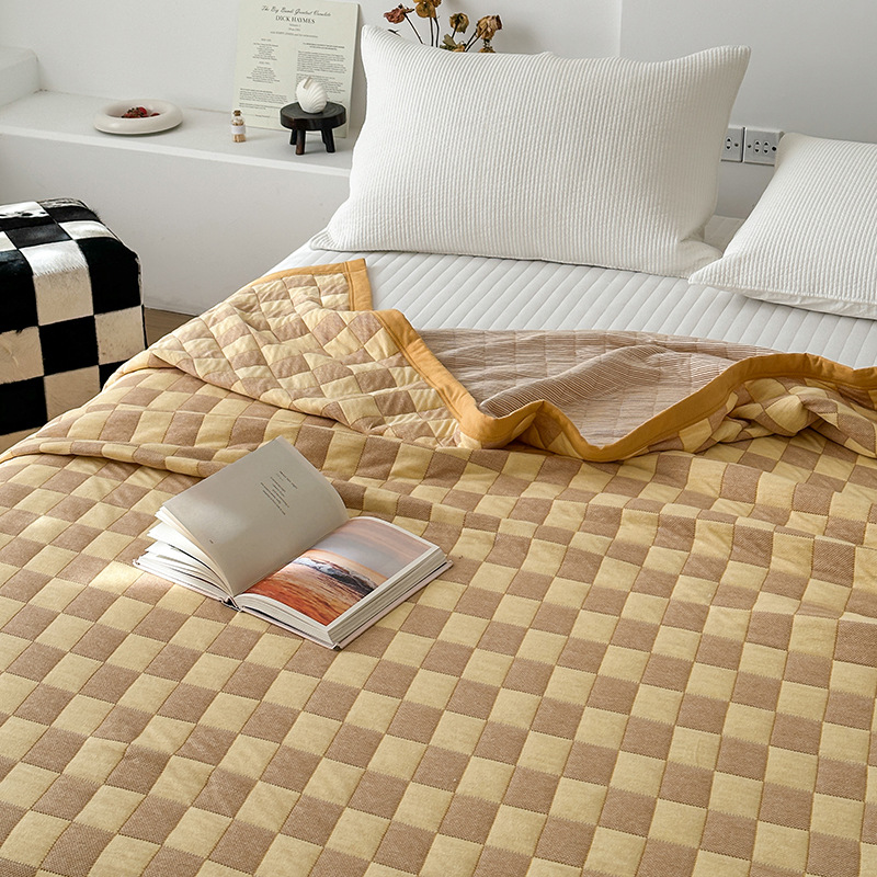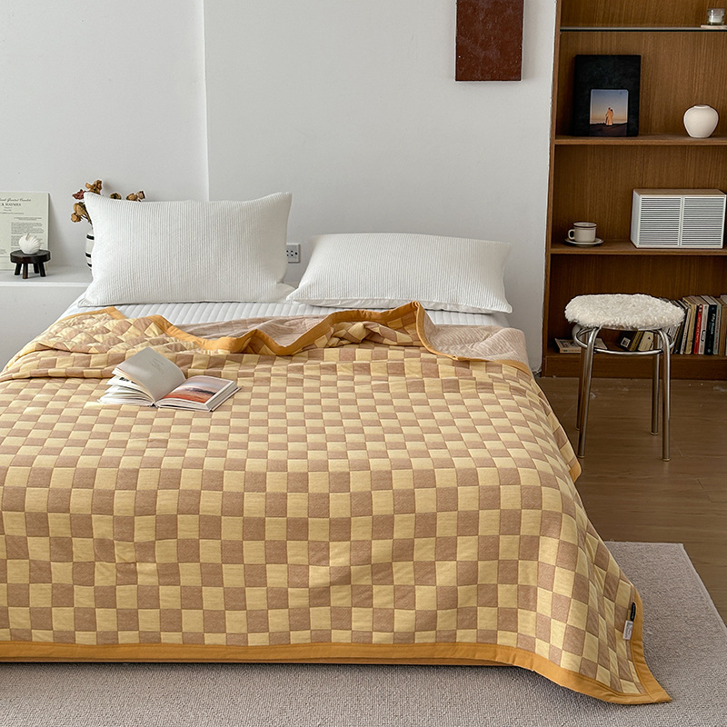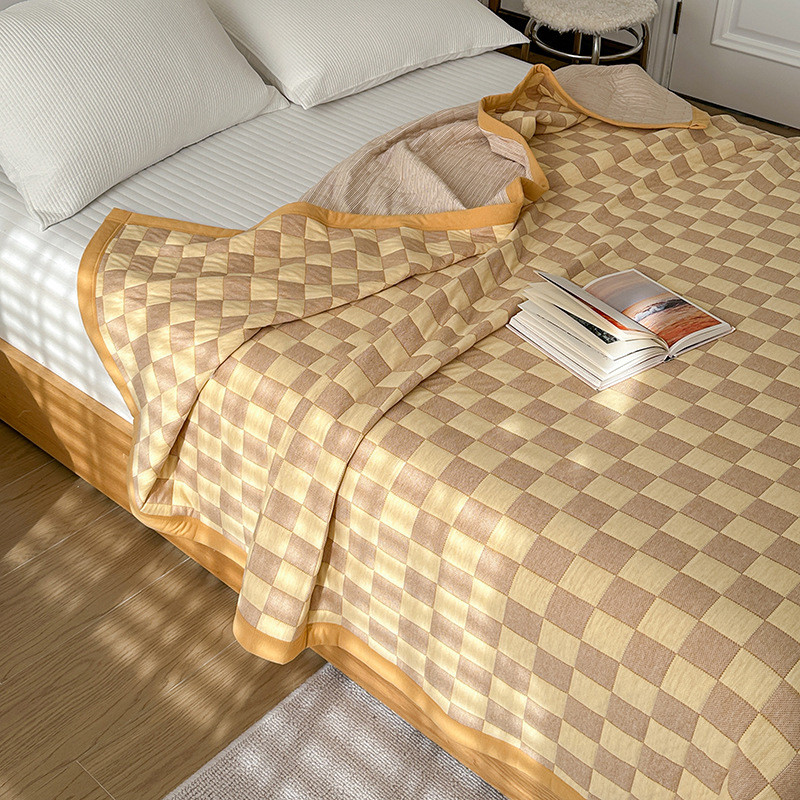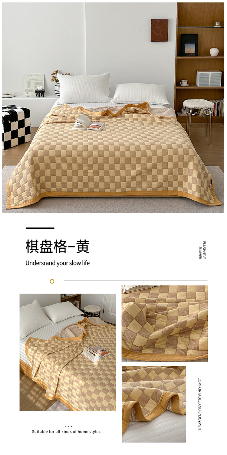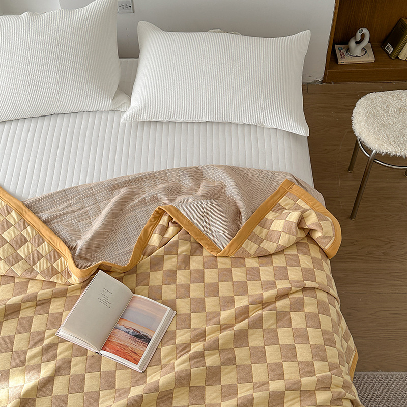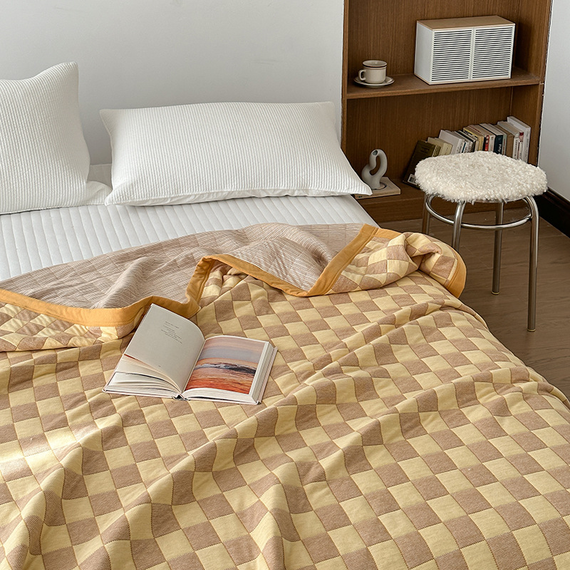 商品名称:吾秀 2023 A类色织全棉针织提花盖毯 棋盘格-黄