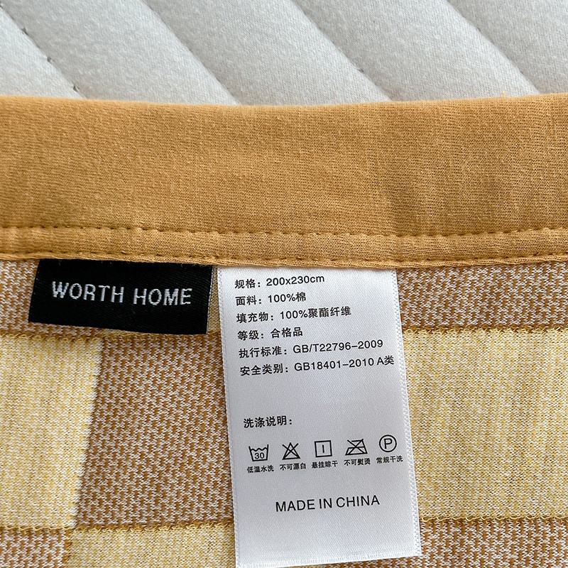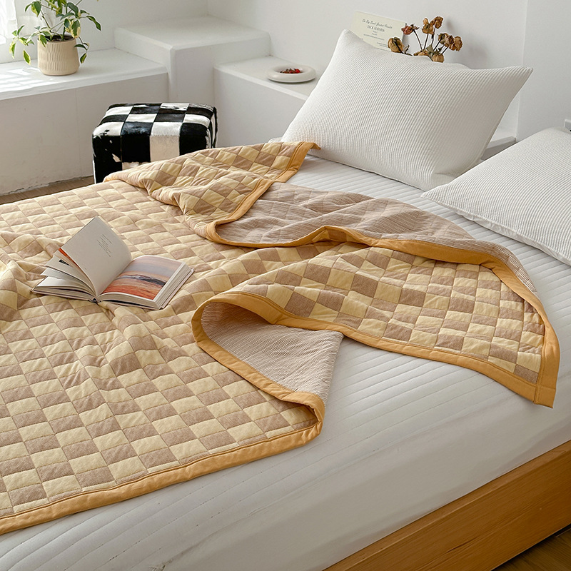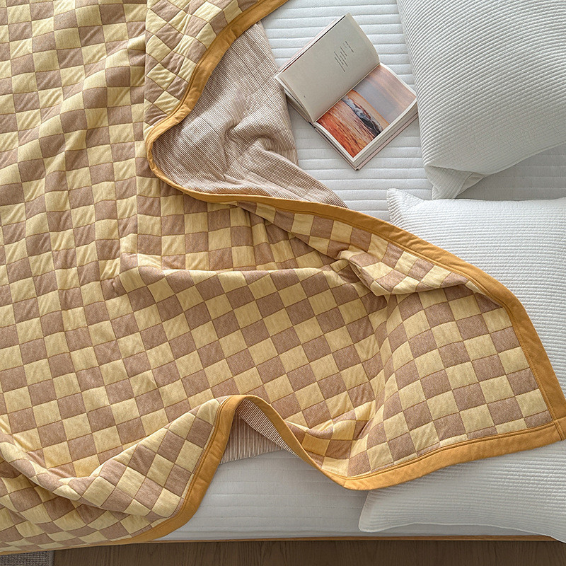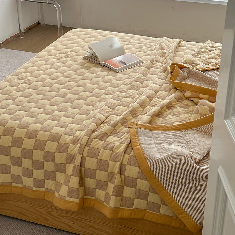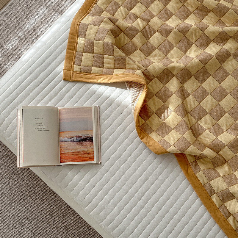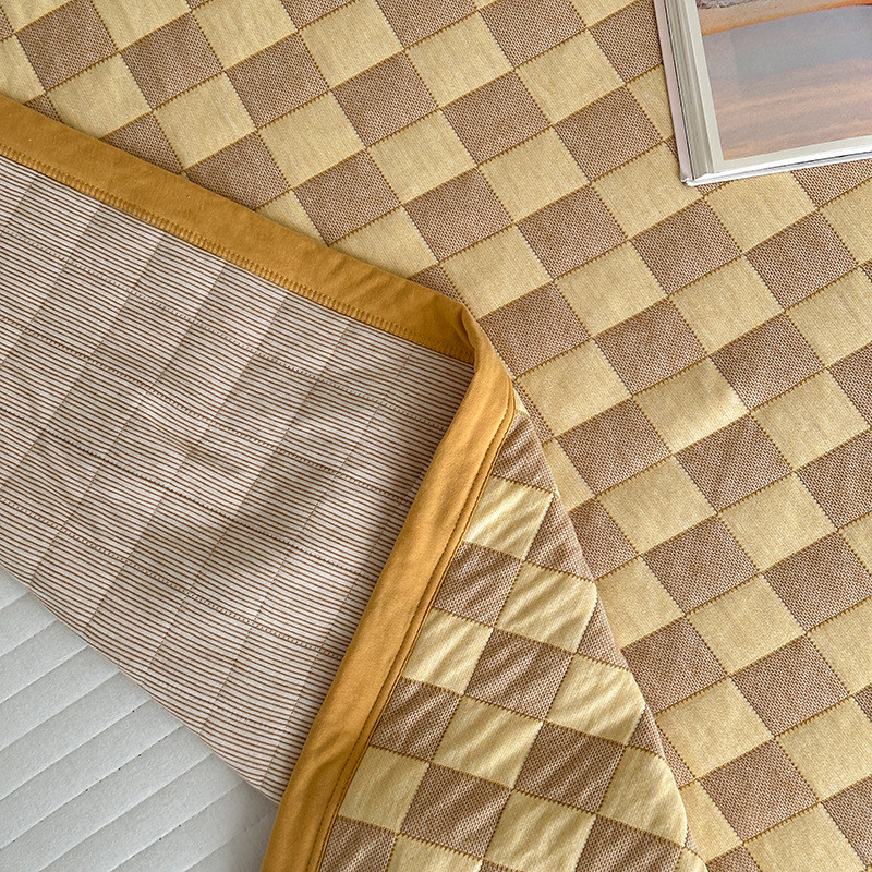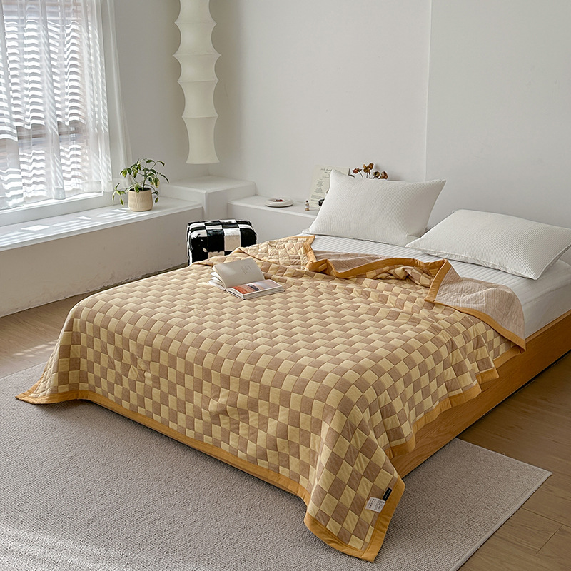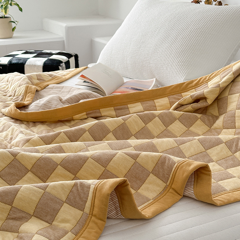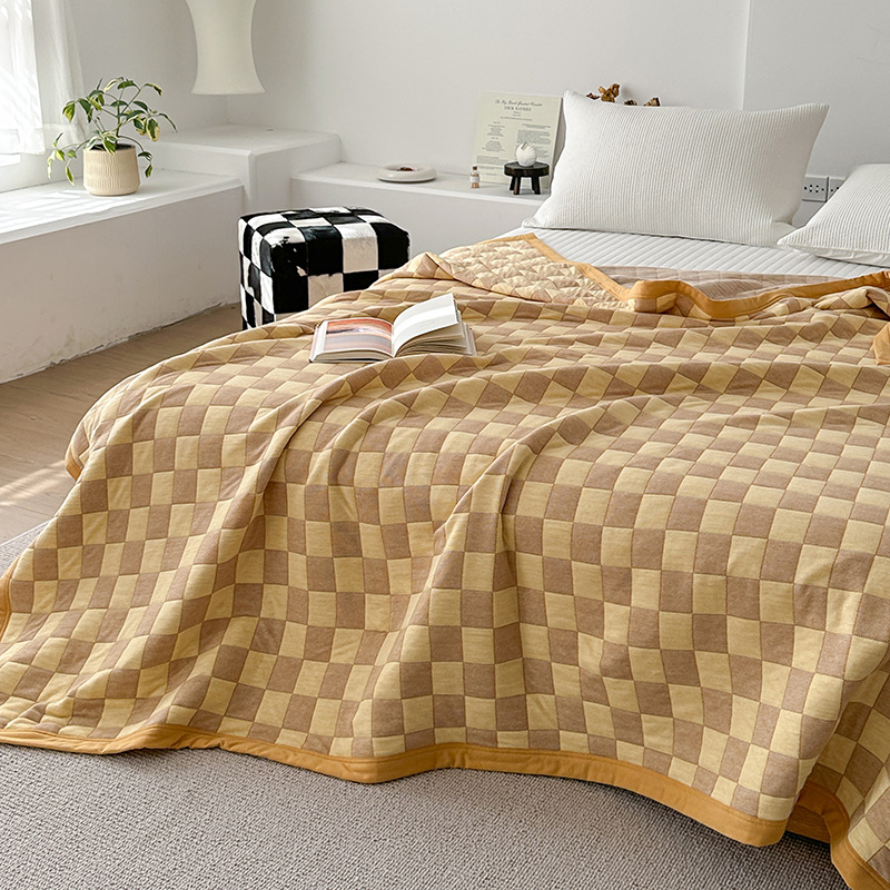 商品名称:吾秀 2023 A类色织全棉针织提花盖毯 棋盘格-黄