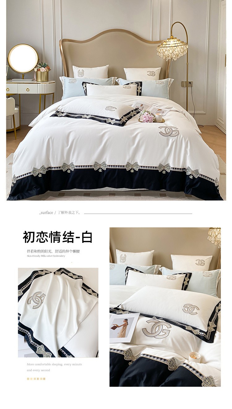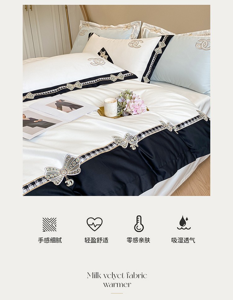 (总)2025新款牛奶绒拼纱四件套-洛可可,白色,粉紫,蓝色,浅灰色,水绿