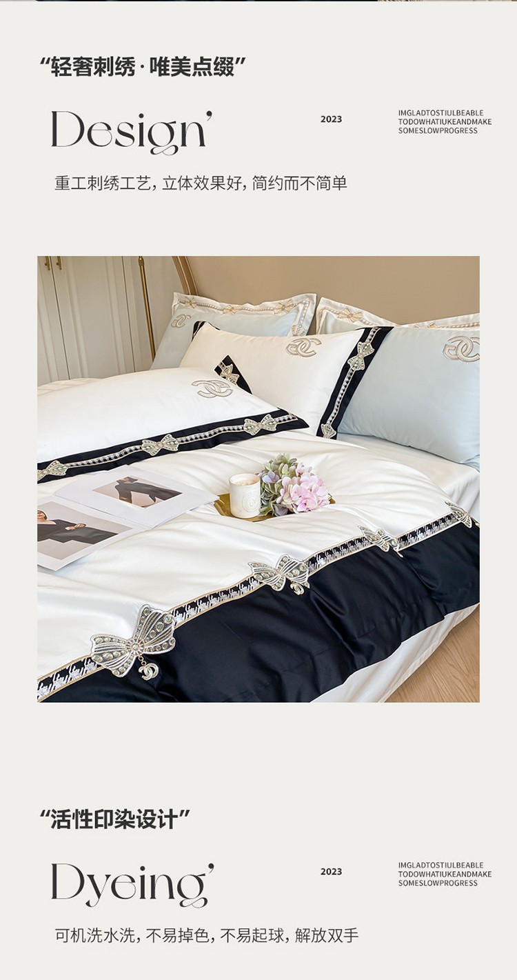 (总)品家居 2025新款180支长绒棉绣花四件套露珠,露珠-香槟色,露珠-紫灰