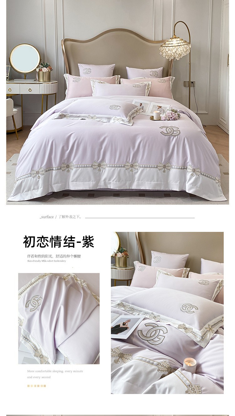 (总)品家居 2025新款180支长绒棉四件套可可系列,可可-粉,可可-蓝,可可-紫