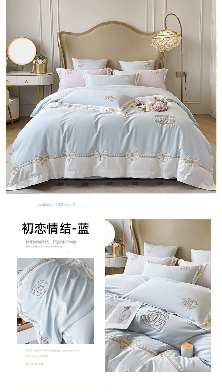 (总)品家居2021新款贝拉花园180支全棉澳棉刺绣四件套,贝拉花园-粉,贝拉花园-蓝