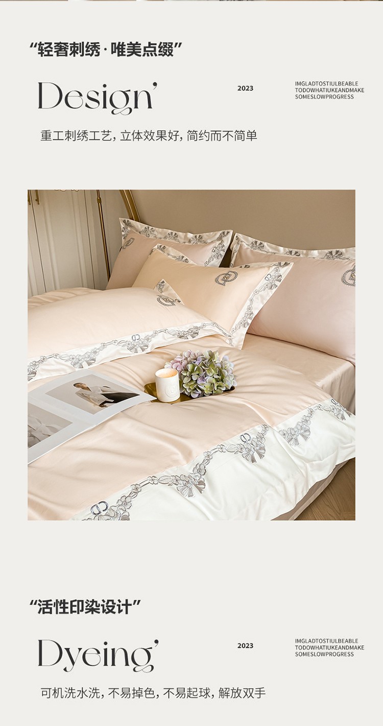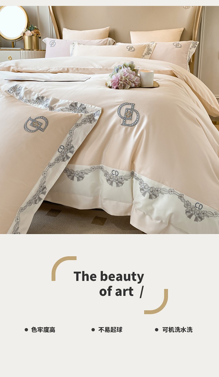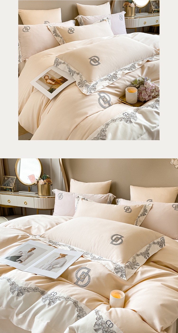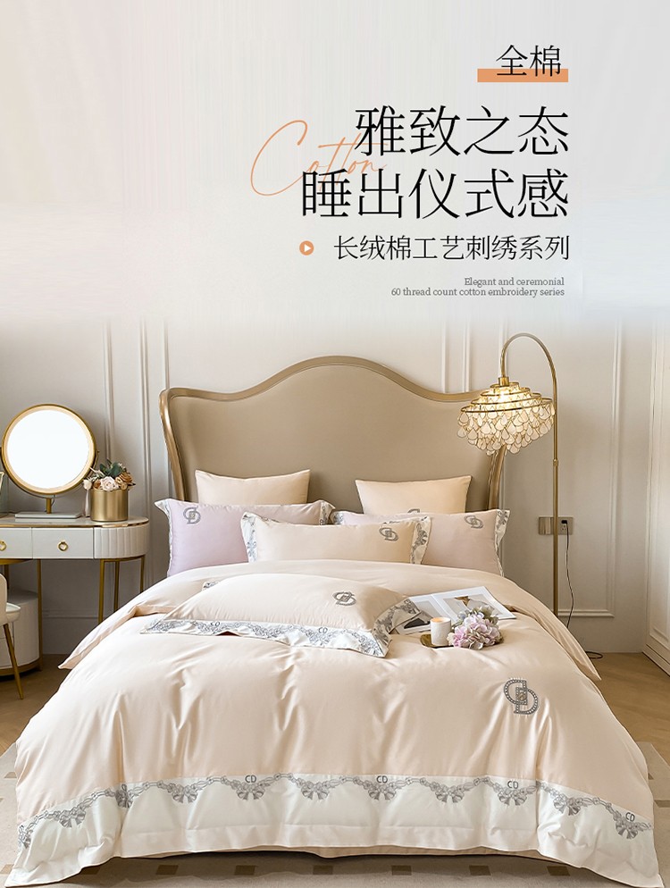 (总)品家居 2025新款180支长绒棉绣花四件套露珠,露珠-香槟色,露珠-紫灰