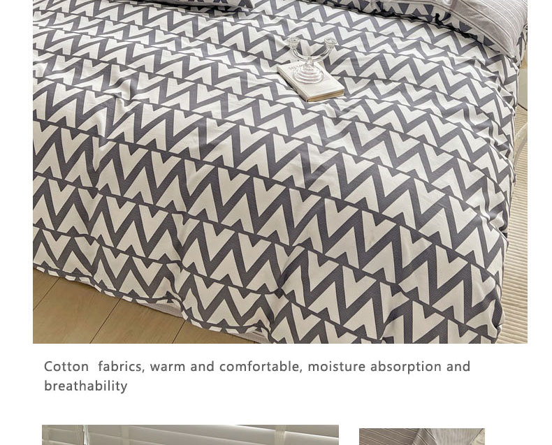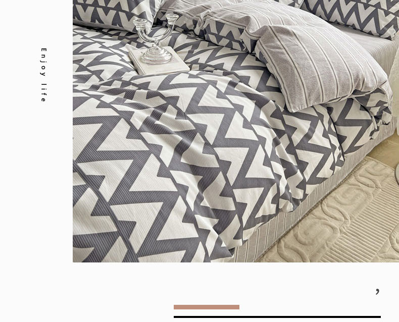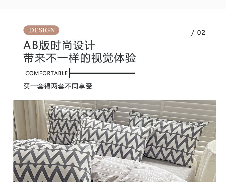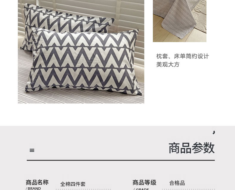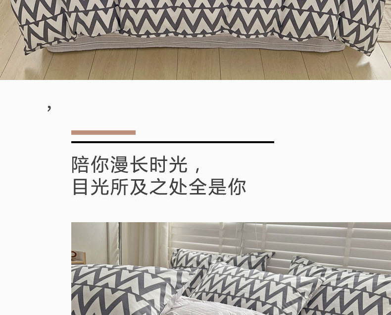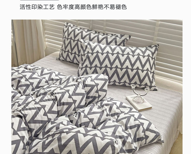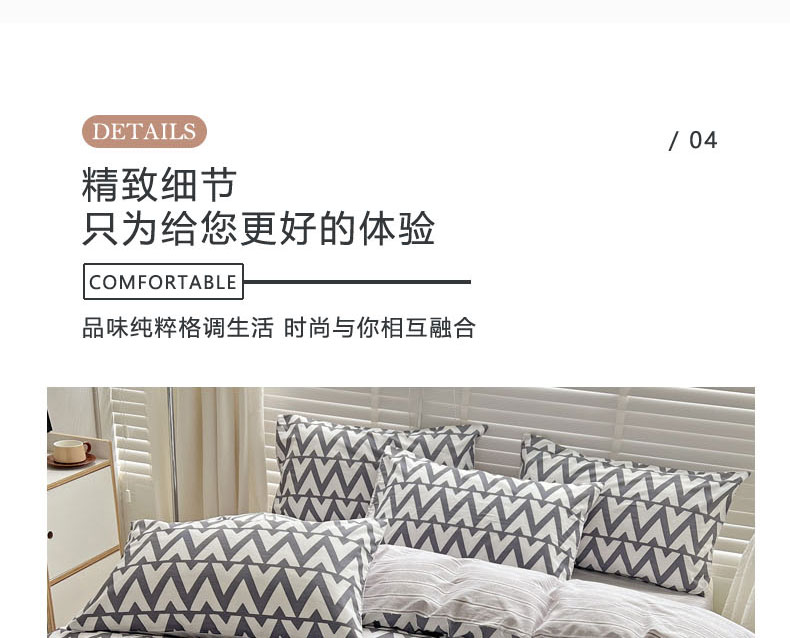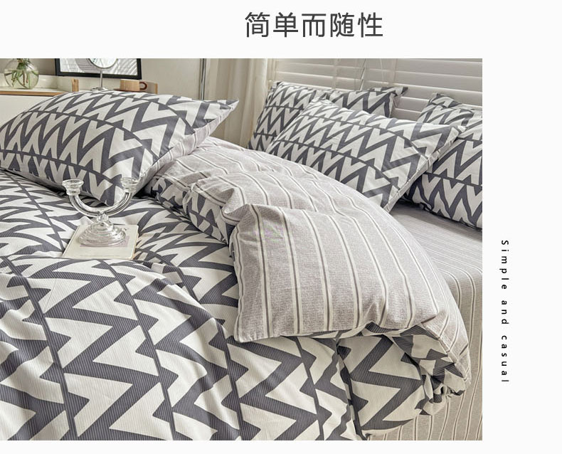 (总)梦家居 2024新款全棉13372简约小清新四件套,彩虹条纹,墨竹—黑色,墨竹—米色
