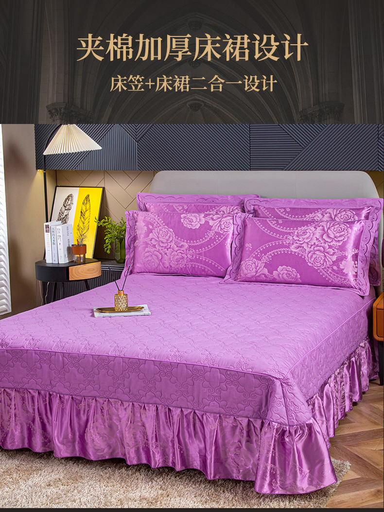 (总)福丽莱家纺 2023新款贡缎提花床裙四件套(夹棉),玛格丽特-金兰,艾莫-玉豆沙,艾薇尔-香槟,爱的约定-香槟玉,安格斯尔-蓝灰,奥斯卡-香槟粉,典范欧风-蓝灰,朵朵花语-砖红,花团锦簇-粉玉,花团锦簇-银灰,花香情缘-粉,花逸芳心-豆沙,花资风韵-浅紫,锦绣花开-金色,静待花开-金色,克里斯娜-银灰,克罗丽莎-金色,琳尚-珊瑚粉,玫瑰风情-大红,密语-雪青,名门世家-银灰,摩歌娜-香槟紫,浓情花梦-雪青,暖心芳妍-大红,千娇百媚-金色,浅芳菲-粉紫,乔安迪-粉,情梦花逸-粉玉,喜瑞祥和-大红,喜上眉梢-砖红,幽香-紫罗兰,悦动旋律-杏兰,黛菲尔兰驼,粉妆伊人浅粉,华庭盛典-豆沙