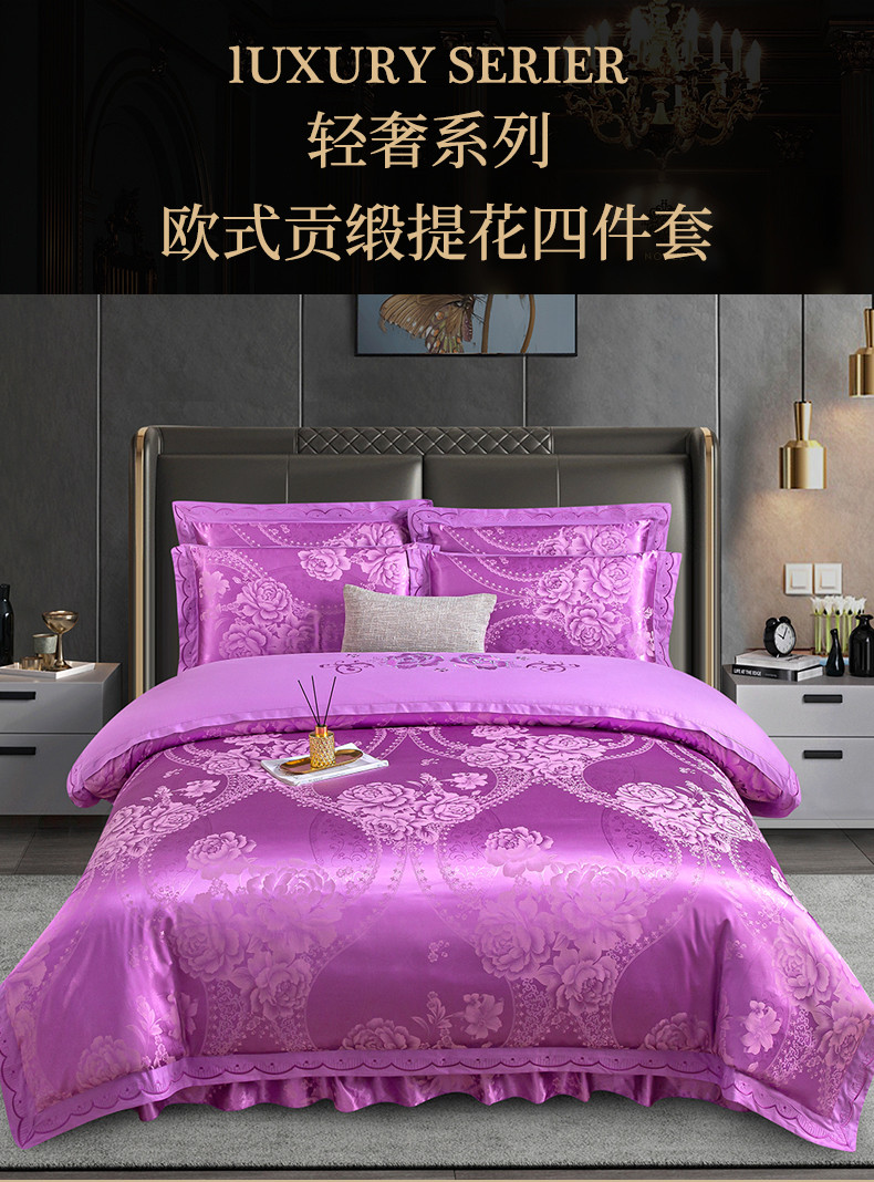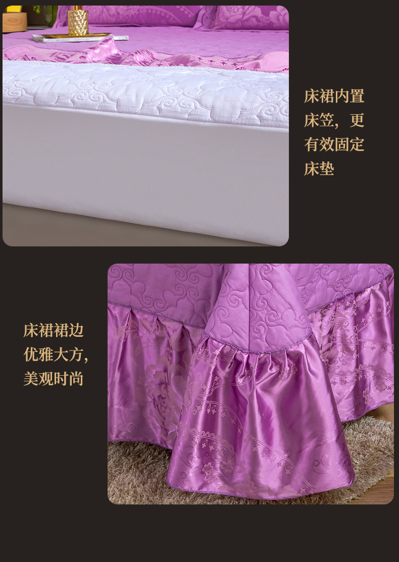 (总) 福丽莱家纺 2019贡缎提花床裙四件套(单层),黛香-豆沙,典范欧风-蓝灰,菲洛嘉,国色佳人,花团锦簇-银灰,花团锦簇-粉玉,玛格丽特-金兰,玫瑰风情-大红,摩卡庄园-紫驼,暖心芳妍-大红,浅芳菲-粉紫,喜上眉梢-砖红,仙境青色