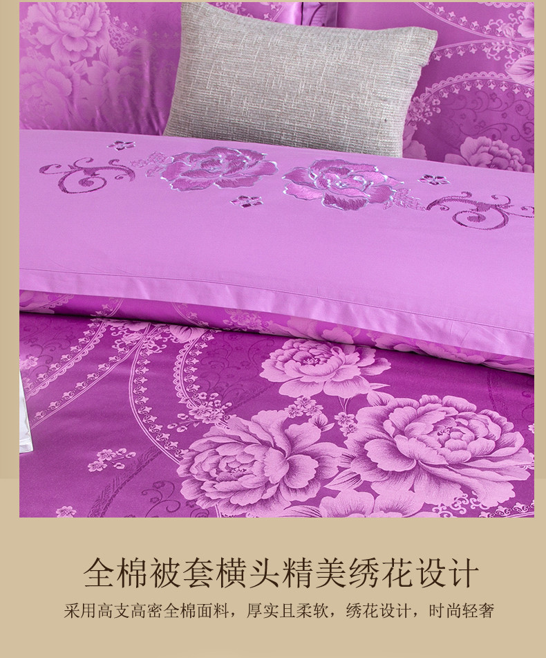 (总)福丽莱 宝宝绒刺绣四件套-浪漫风情,玉色,大红,绅士蓝,烟灰,宾利蓝,柠檬黄,粉红,抹茶绿,豆沙