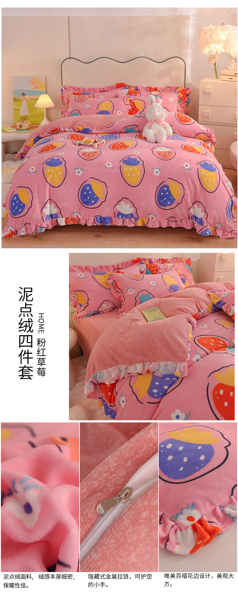 当前位置: 91家纺网 > 商品网购 > 床品套件 > 四件套 > 磨绒四件套 > 甜之梦家纺 2025新款泥点绒印花四件套(任何尺寸都可定做) 粉红草莓