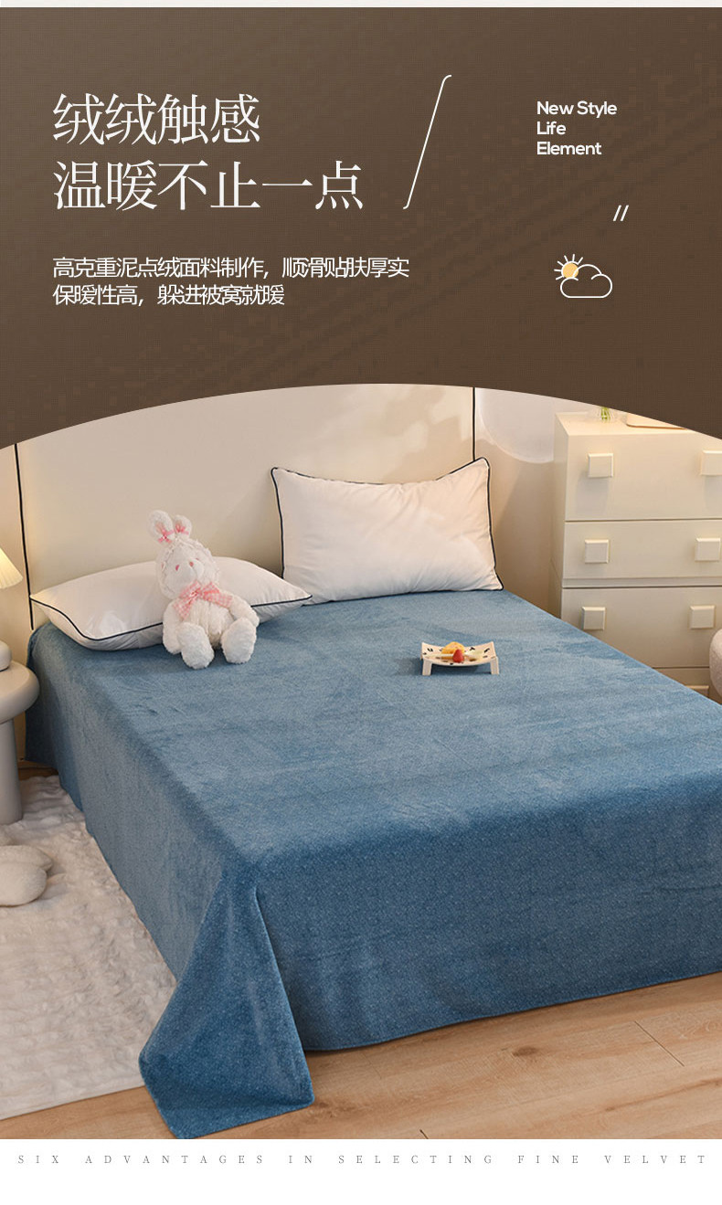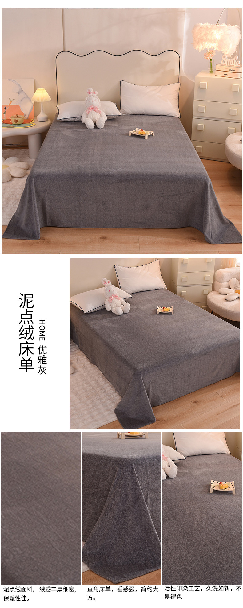 (总)甜之梦家纺 2025新款韩版泥点绒单床单(任何尺寸都可定做),贵族蓝,玛瑙绿,泥点绒淡粉,优雅灰
