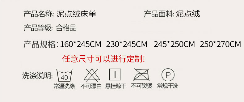 商品名称:(总)甜之梦家纺 2025新款韩版泥点绒单床单(任何尺寸都可定做)