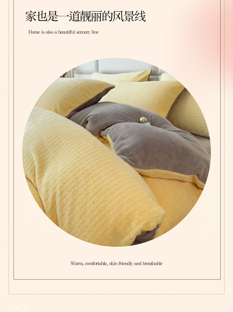 商品名称:印季 2024新款立体剪花牛奶绒保暖四件套-十字结 亮黄-灰