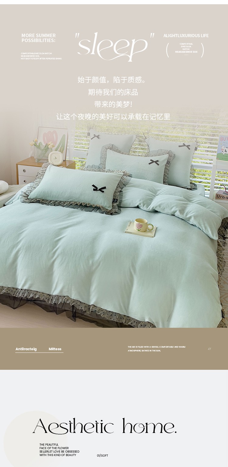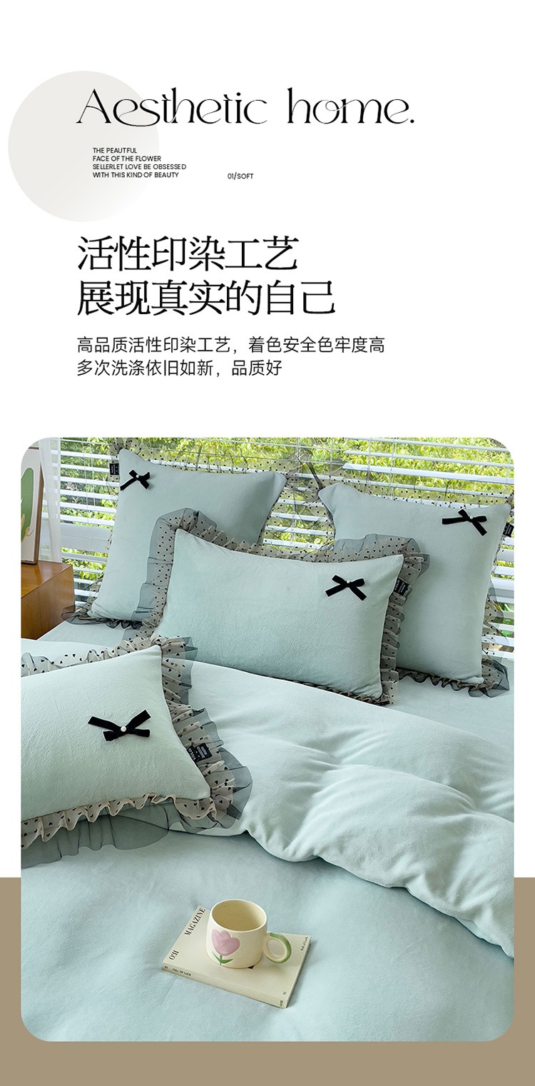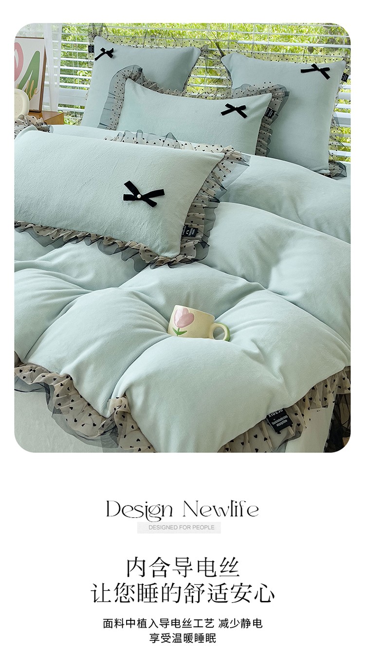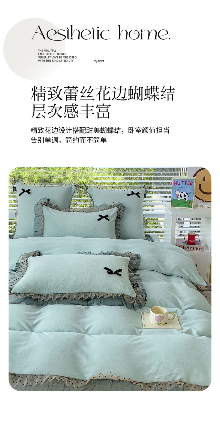 (总)2025新款牛奶绒拼纱四件套-洛可可,白色,粉紫,蓝色,浅灰色,水绿