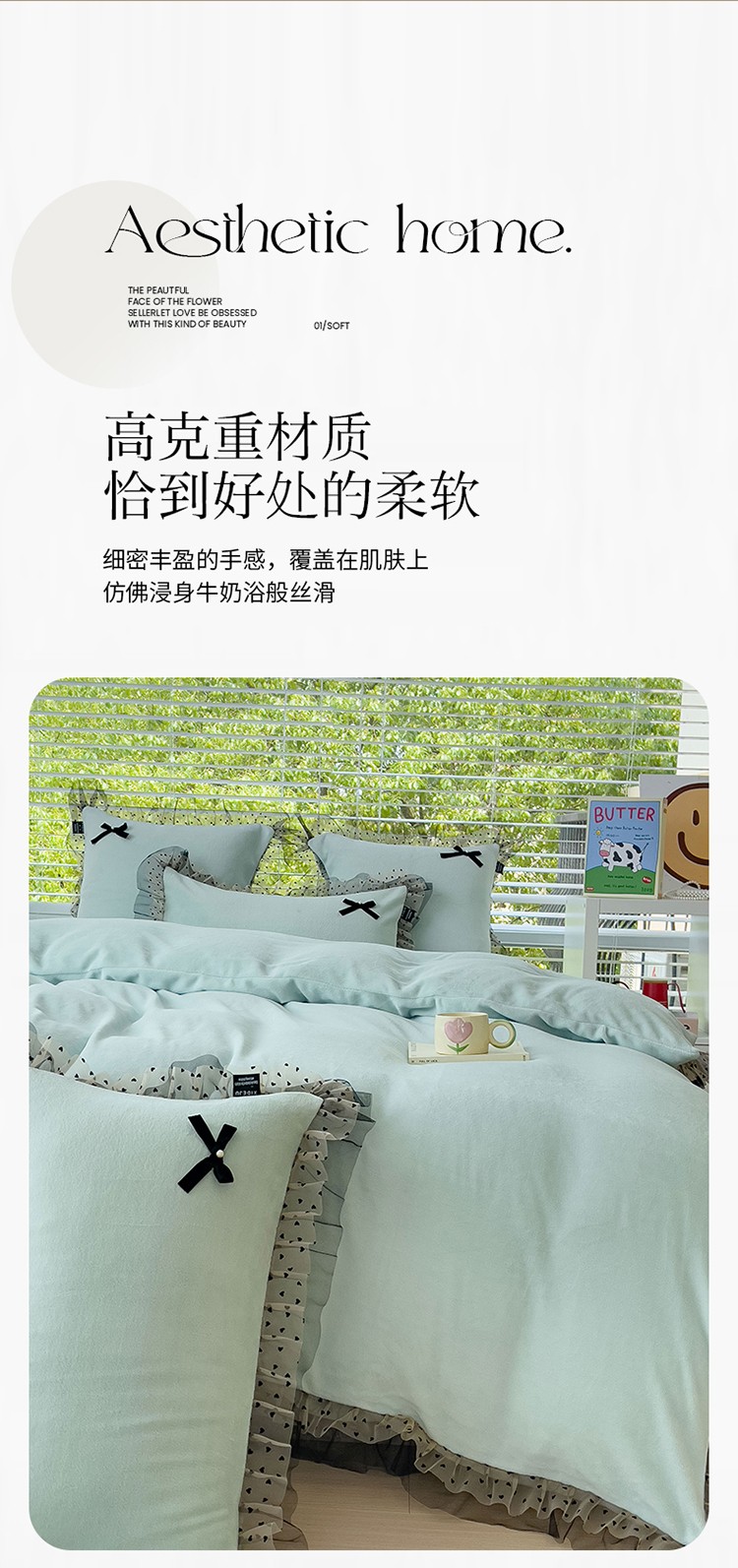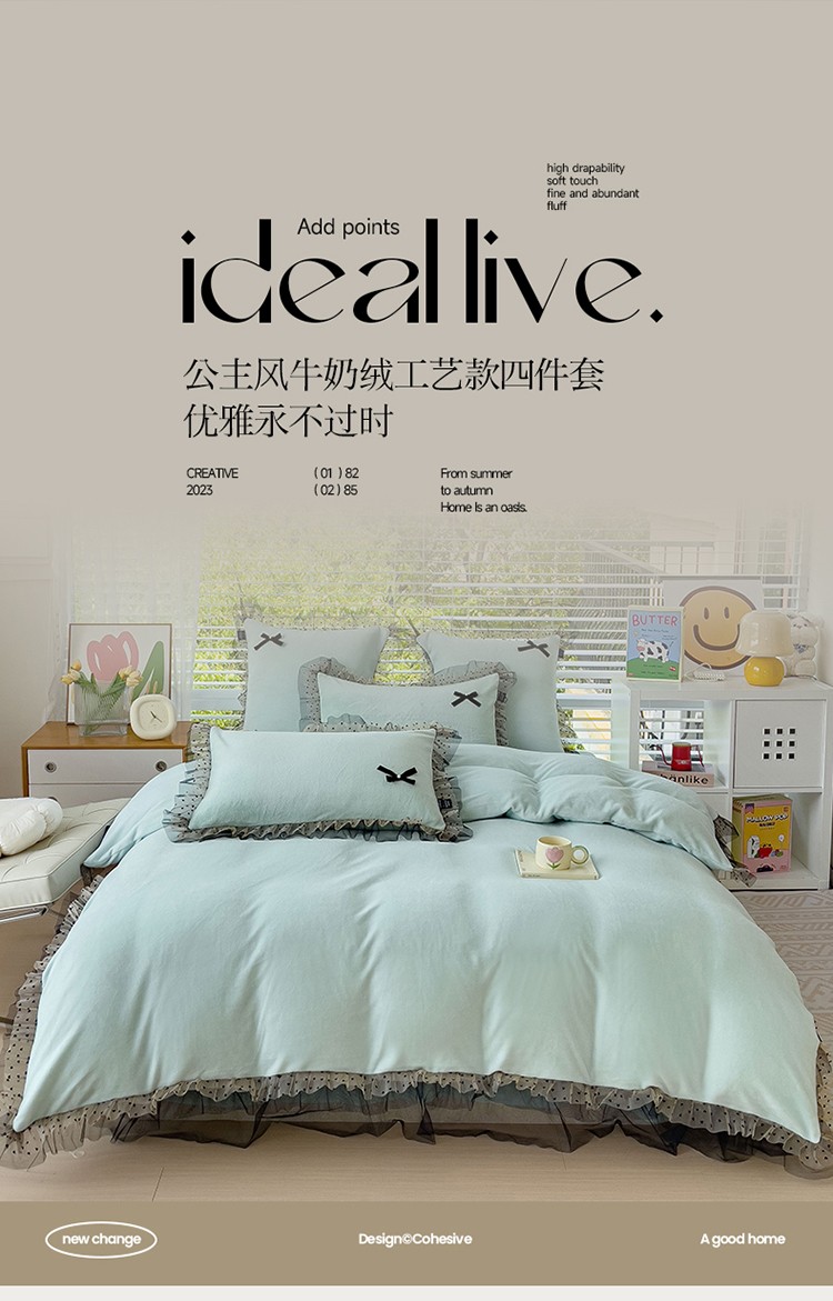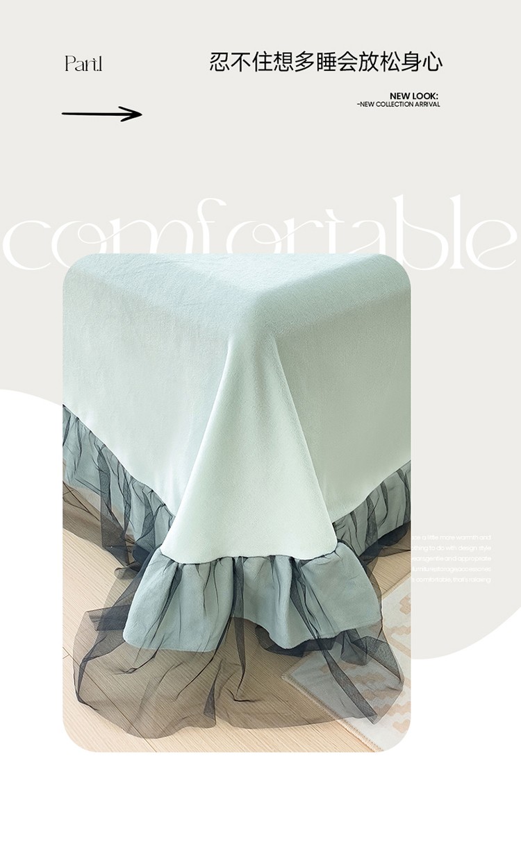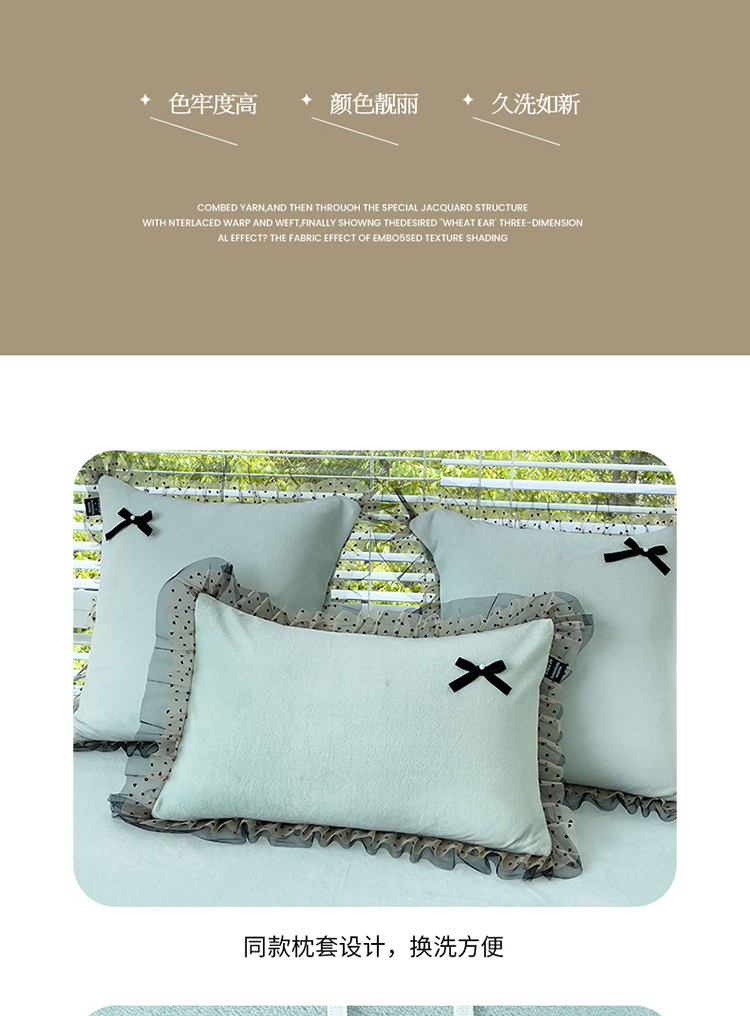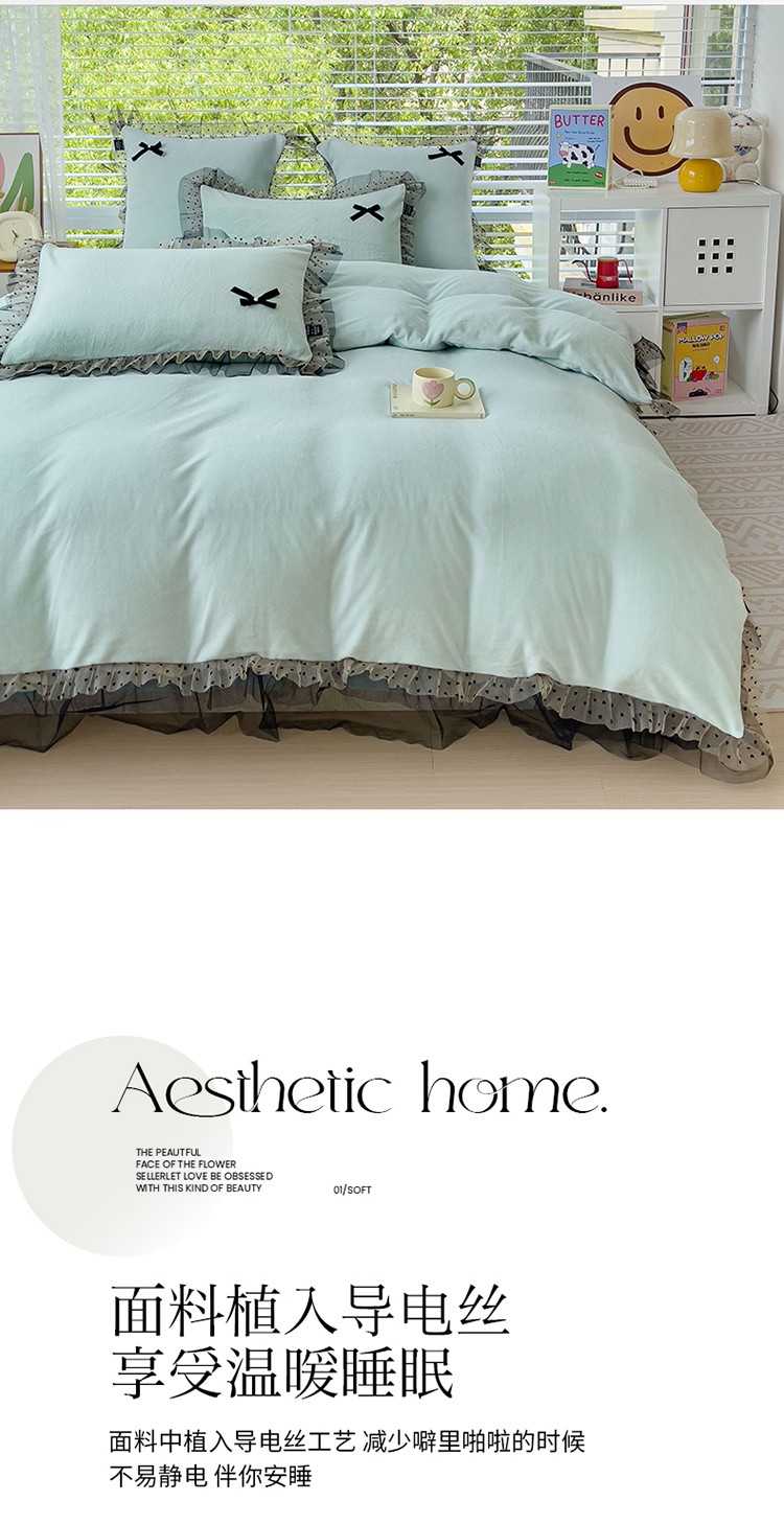 (总)2025新款牛奶绒拼纱四件套-洛可可,白色,粉紫,蓝色,浅灰色,水绿