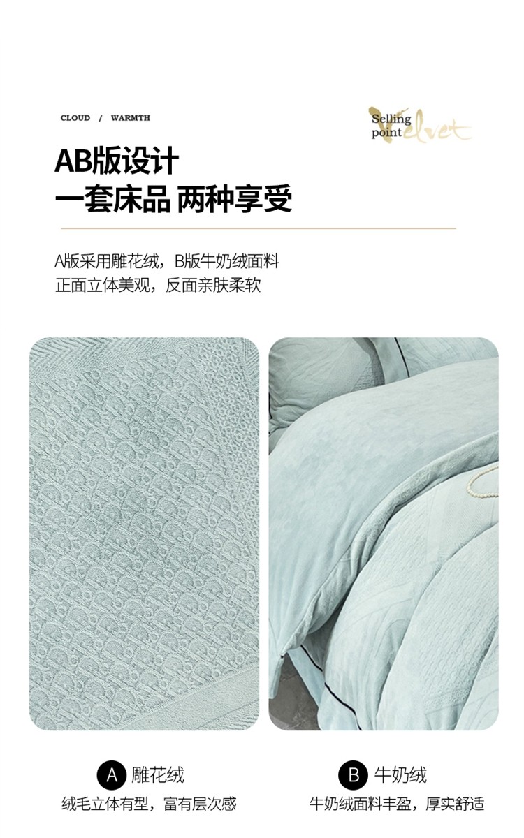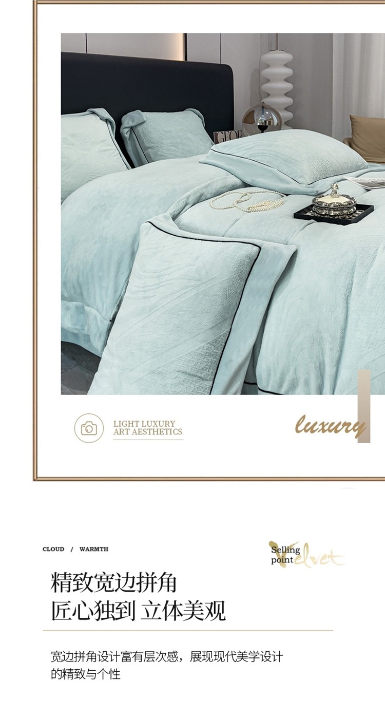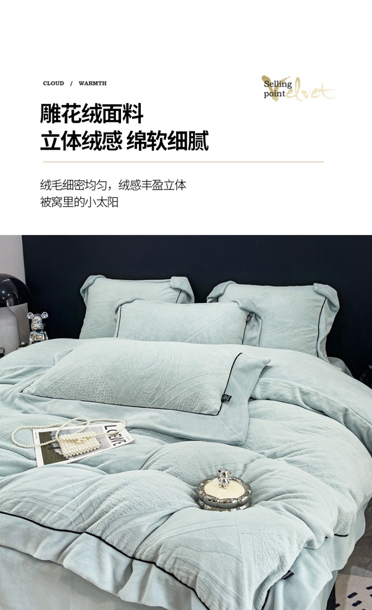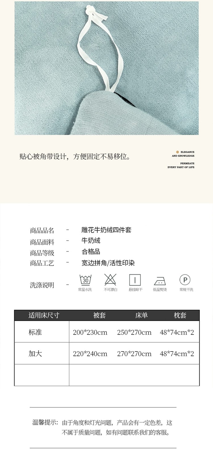 商品名称:2025新款牛奶绒雕花四件套-苏黎 蓝色