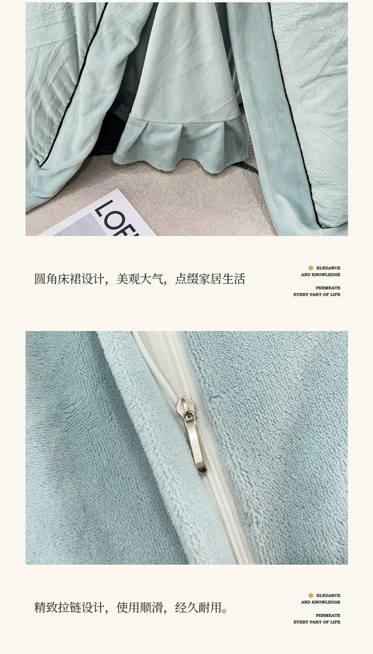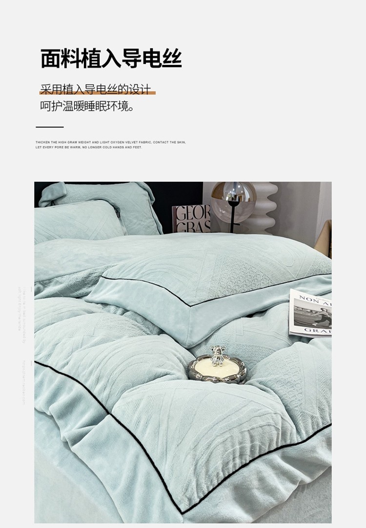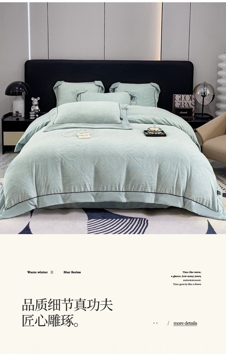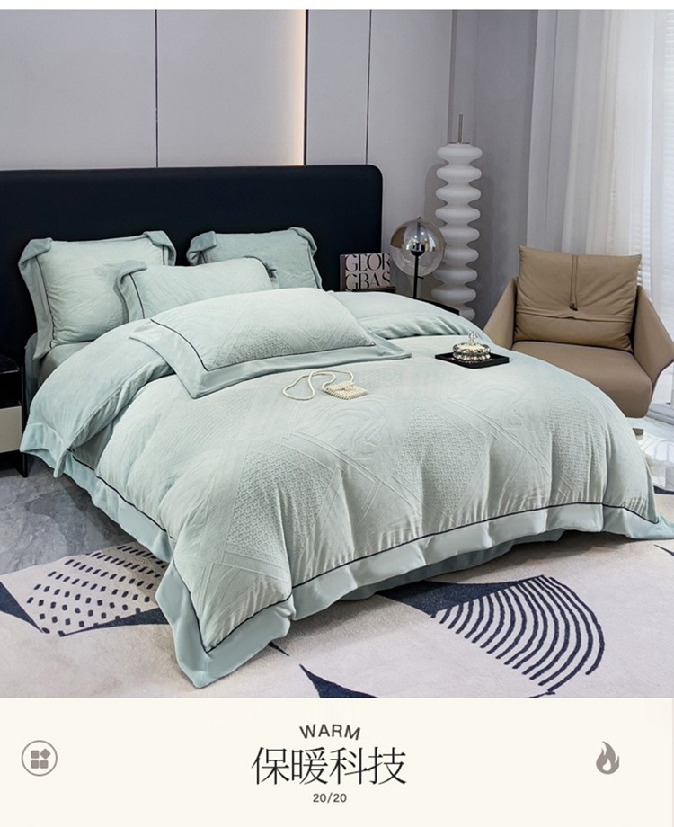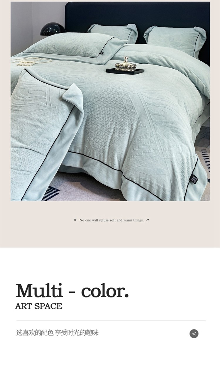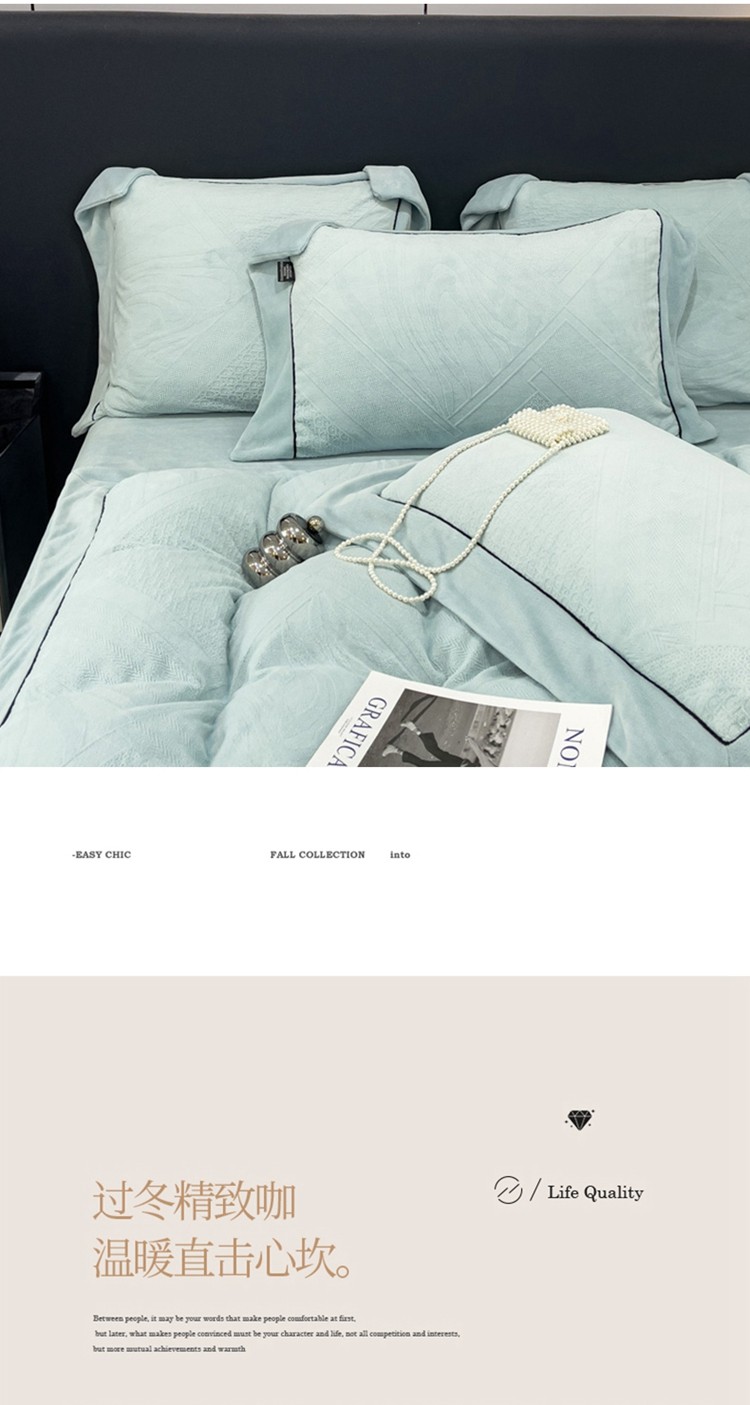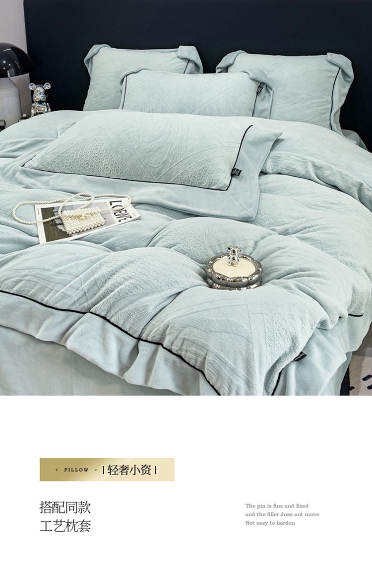 2025新款牛奶绒雕花四件套-苏黎 蓝色