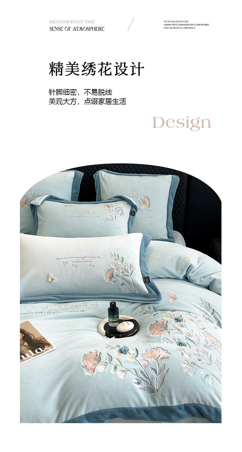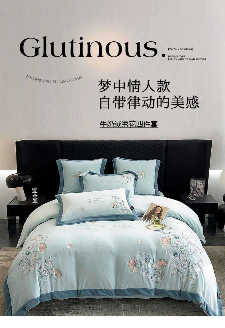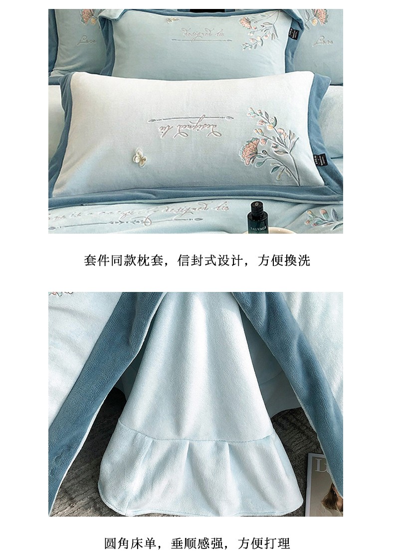 品家居 2025新款牛奶绒绣花四件套-蝶舞恋花 蓝色