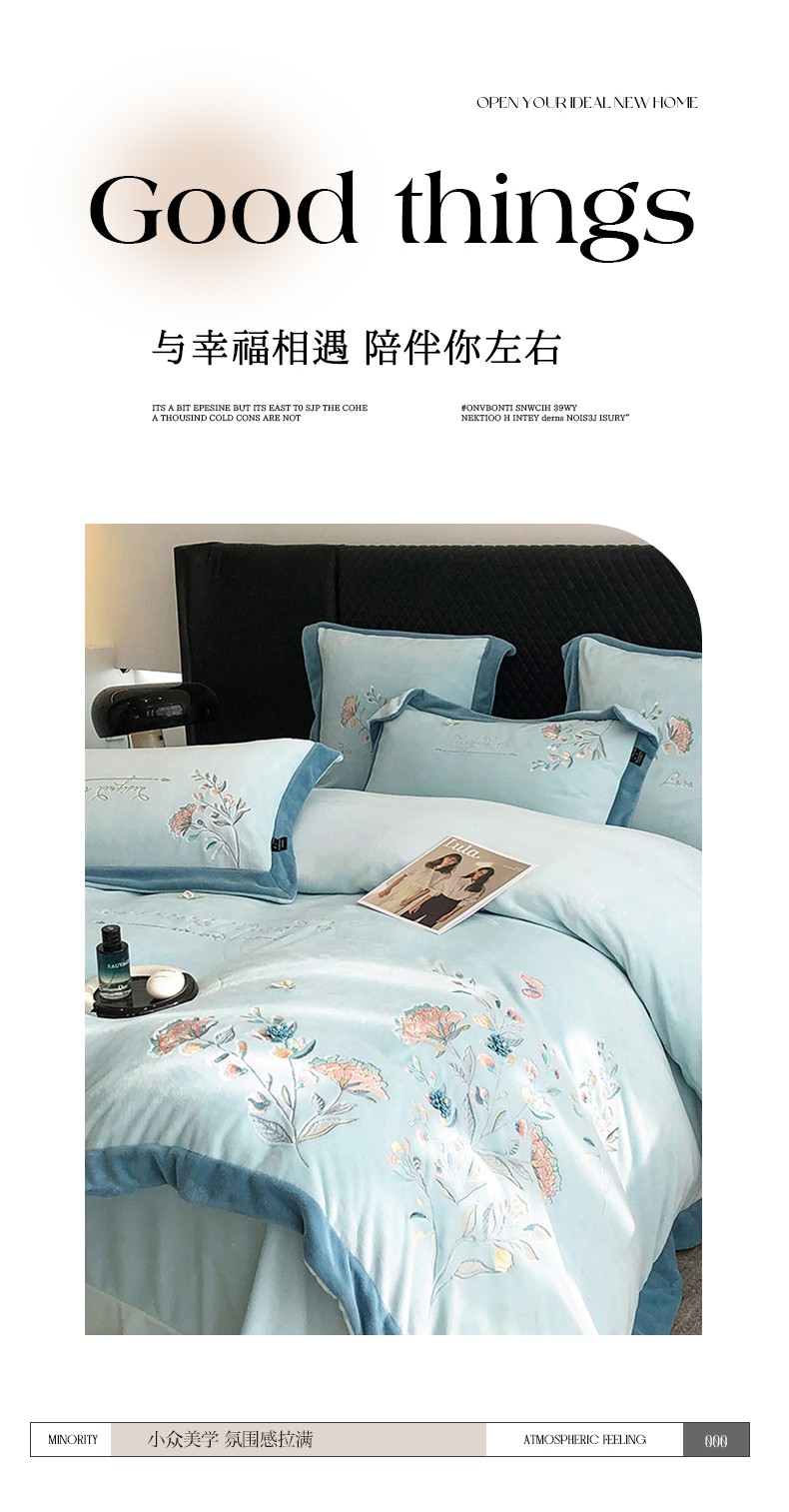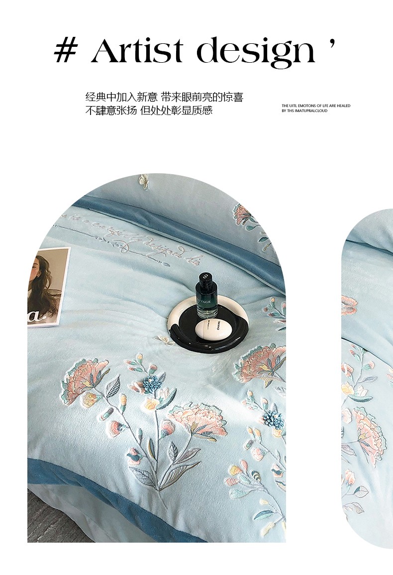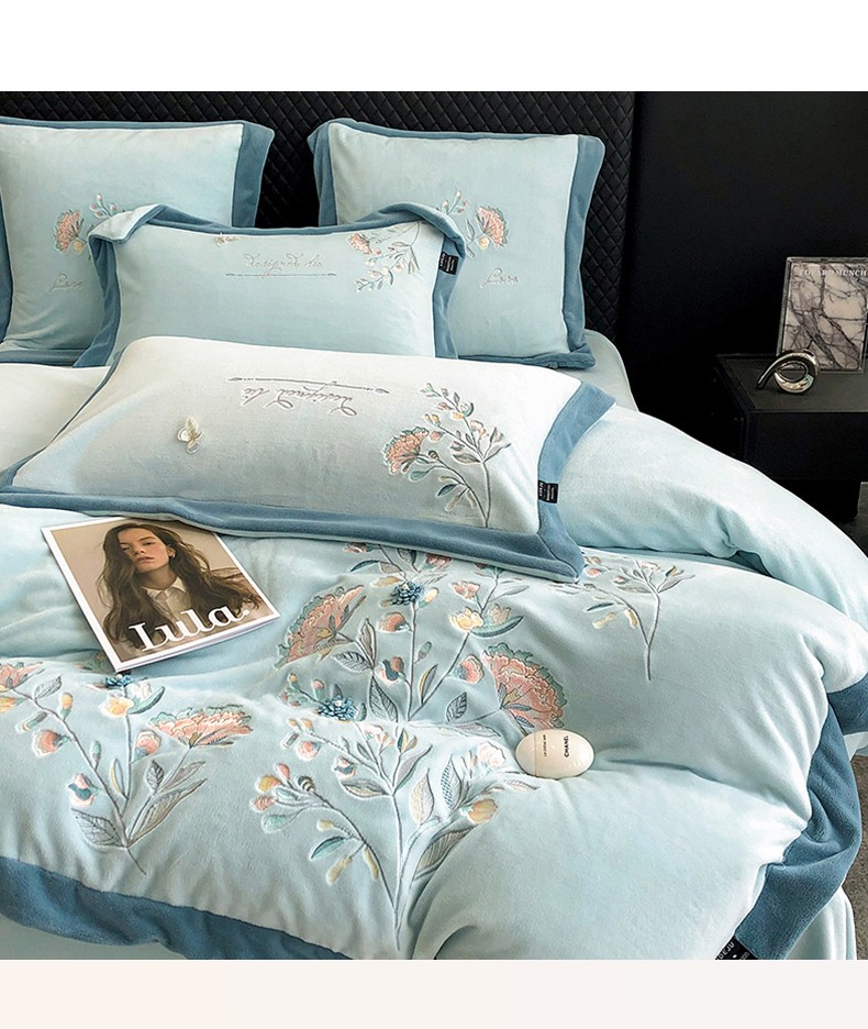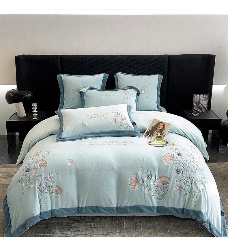 品家居 2025新款牛奶绒绣花四件套-蝶舞恋花 蓝色