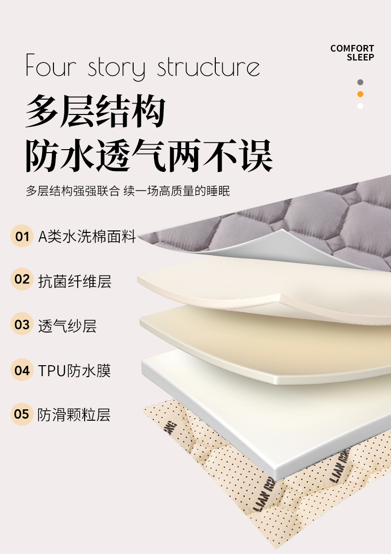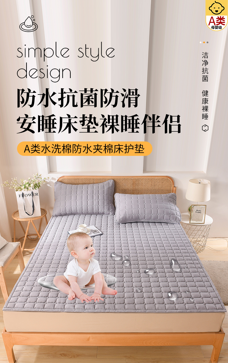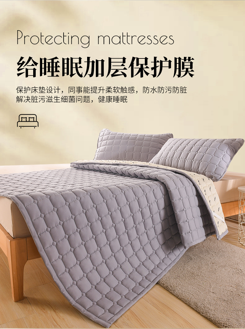 商品名称:恋绒家纺 2025升级款水洗棉床褥隔尿防水床垫隔尿垫护理垫床护罩垫子 防水款-青灰色