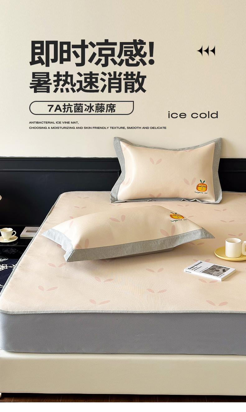 商品名称:甜梦 2024新款母婴级7A抗菌养生冰藤席影棚1—床笠款 小草猫猫(床笠款)