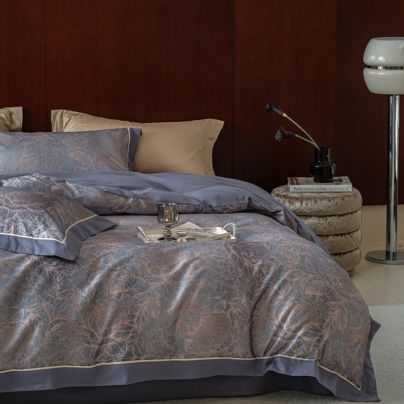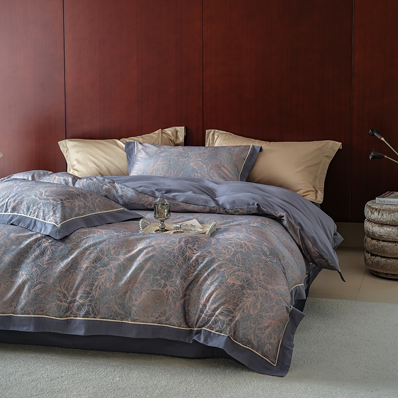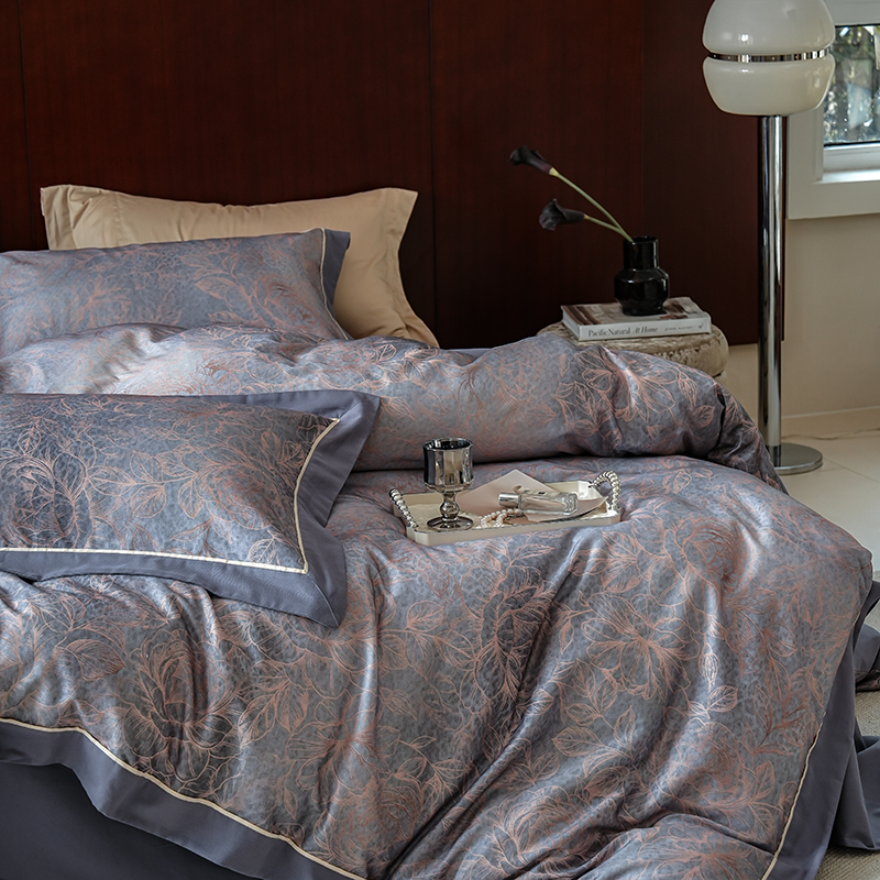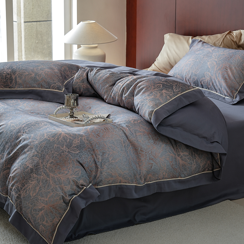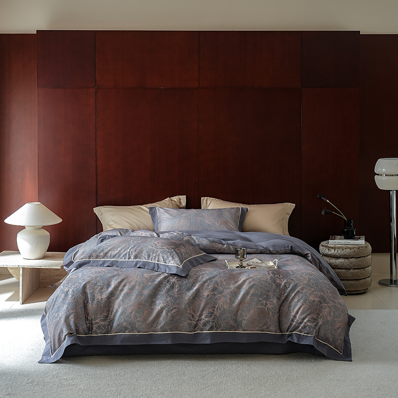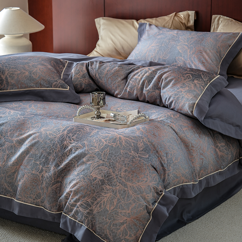 2024新款天丝棉磨毛宽边+嵌条印花四件套 雾野-灰