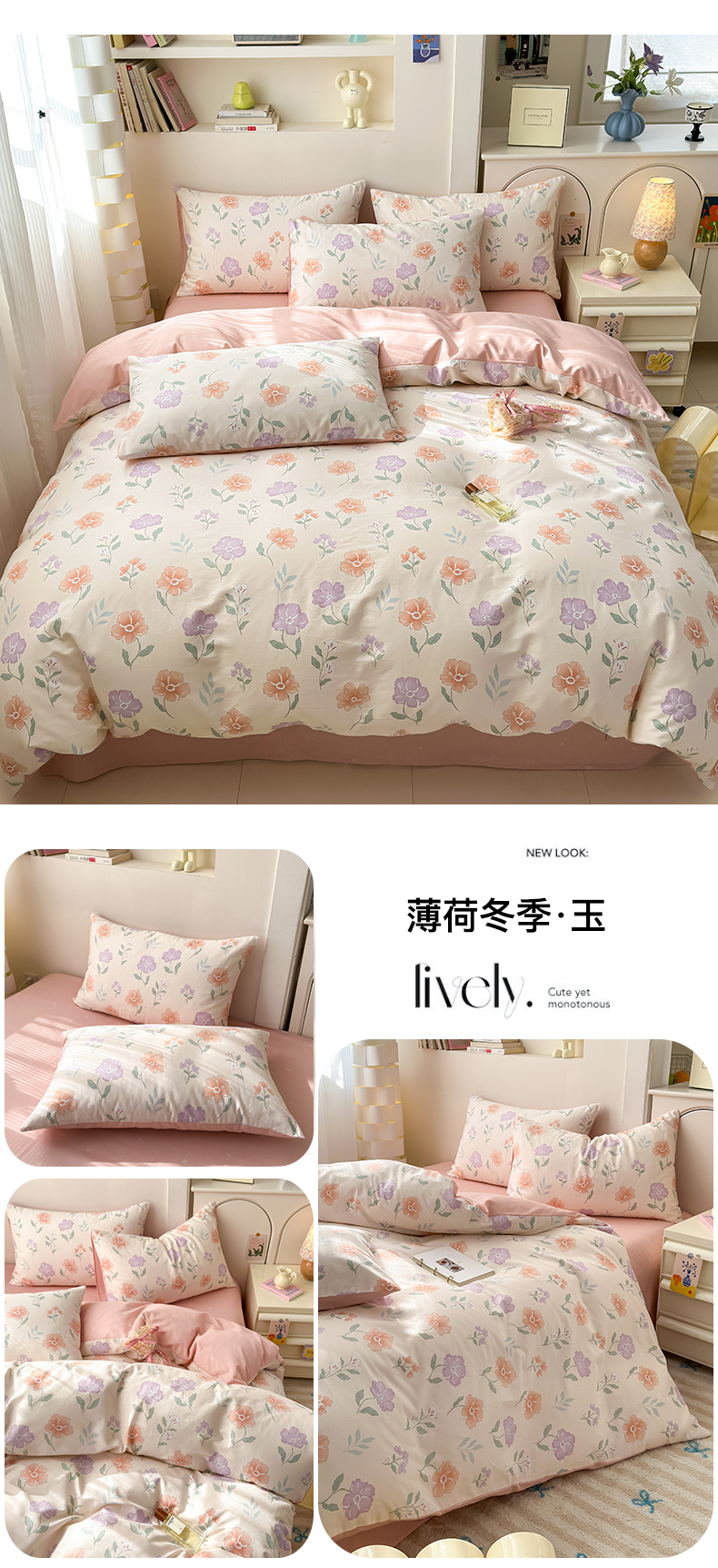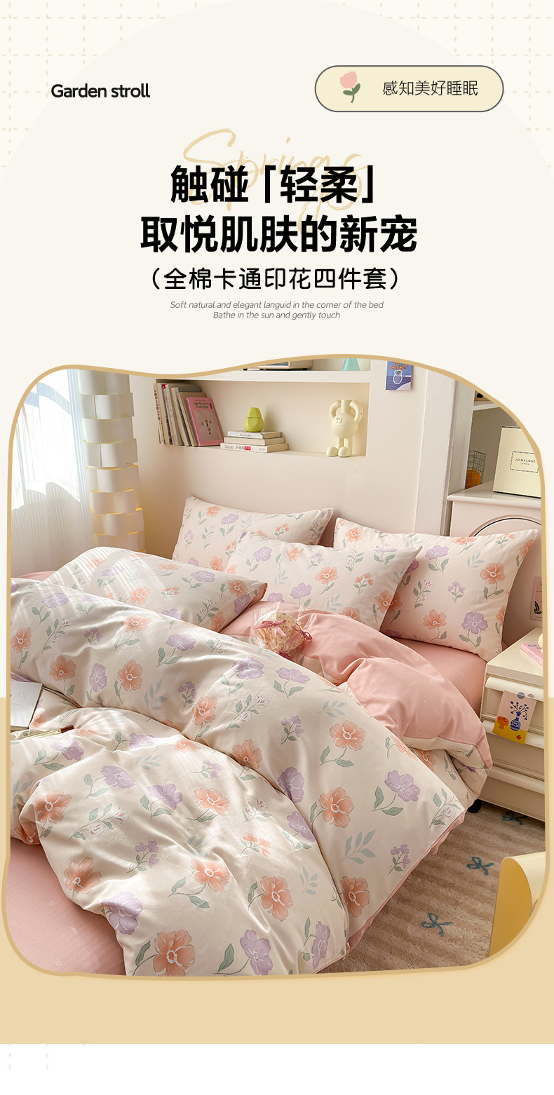 (总)清雅福 2026春夏新款INS小清新40支全棉13372四件套第一批,棒棒糖女孩,春之约定,点点小狗,动物聚会,豆丁小熊,粉心狗,富贵狗,果子象,含羞草,假日小狗