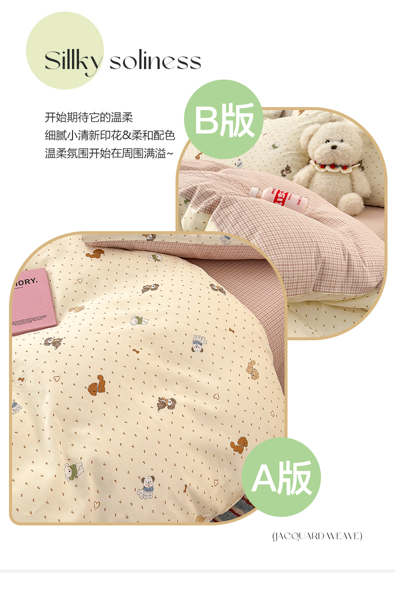 (总)清雅福 2026春夏新款INS小清新40支全棉13372单被套第一批,棒棒糖女孩,春之约定,点点小狗,动物聚会,豆丁小熊,粉心狗,富贵狗,果子象,含羞草,假日小狗