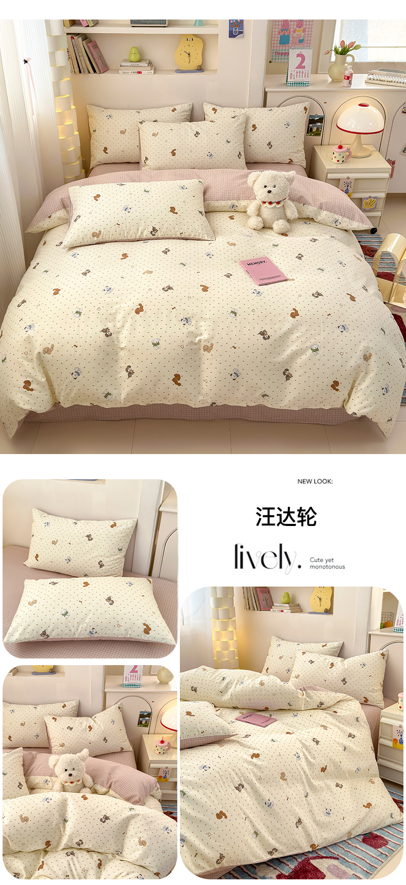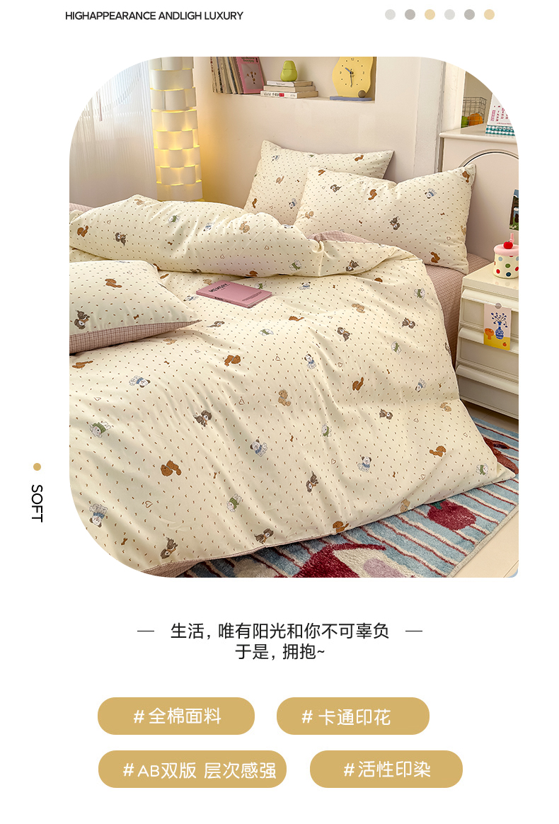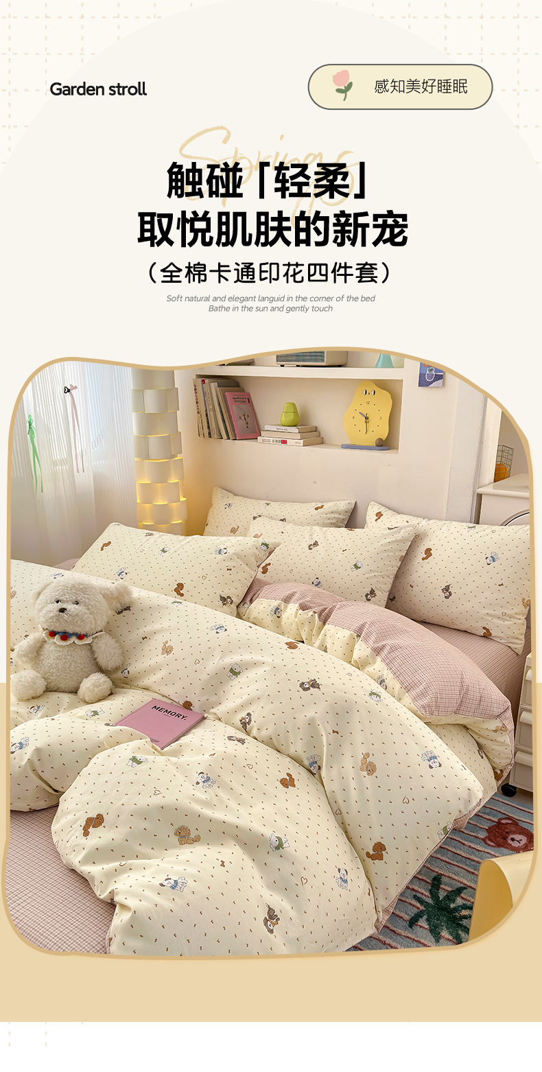 (总)清雅福 2026春夏新款INS小清新40支全棉13372四件套第一批,棒棒糖女孩,春之约定,点点小狗,动物聚会,豆丁小熊,粉心狗,富贵狗,果子象,含羞草,假日小狗