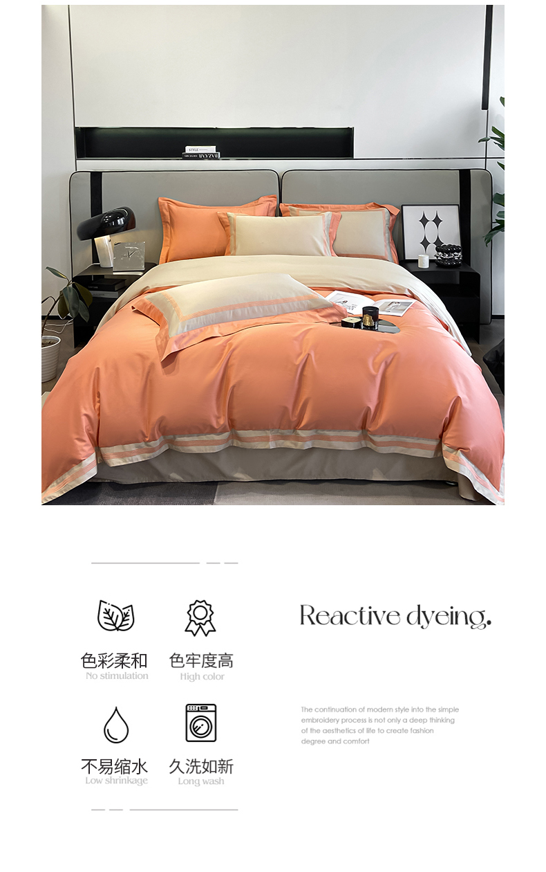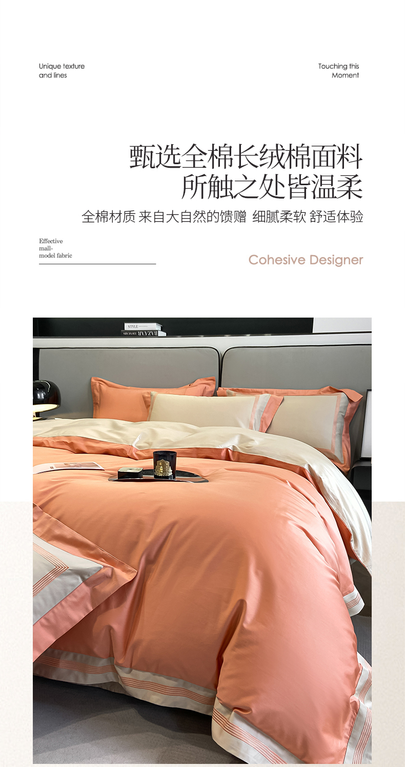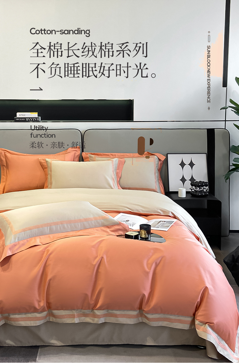 商品名称:桃园 2025新款纯棉全棉长绒棉刺绣绣花高端礼盒四件套-莱卡 莱卡爱玛橙