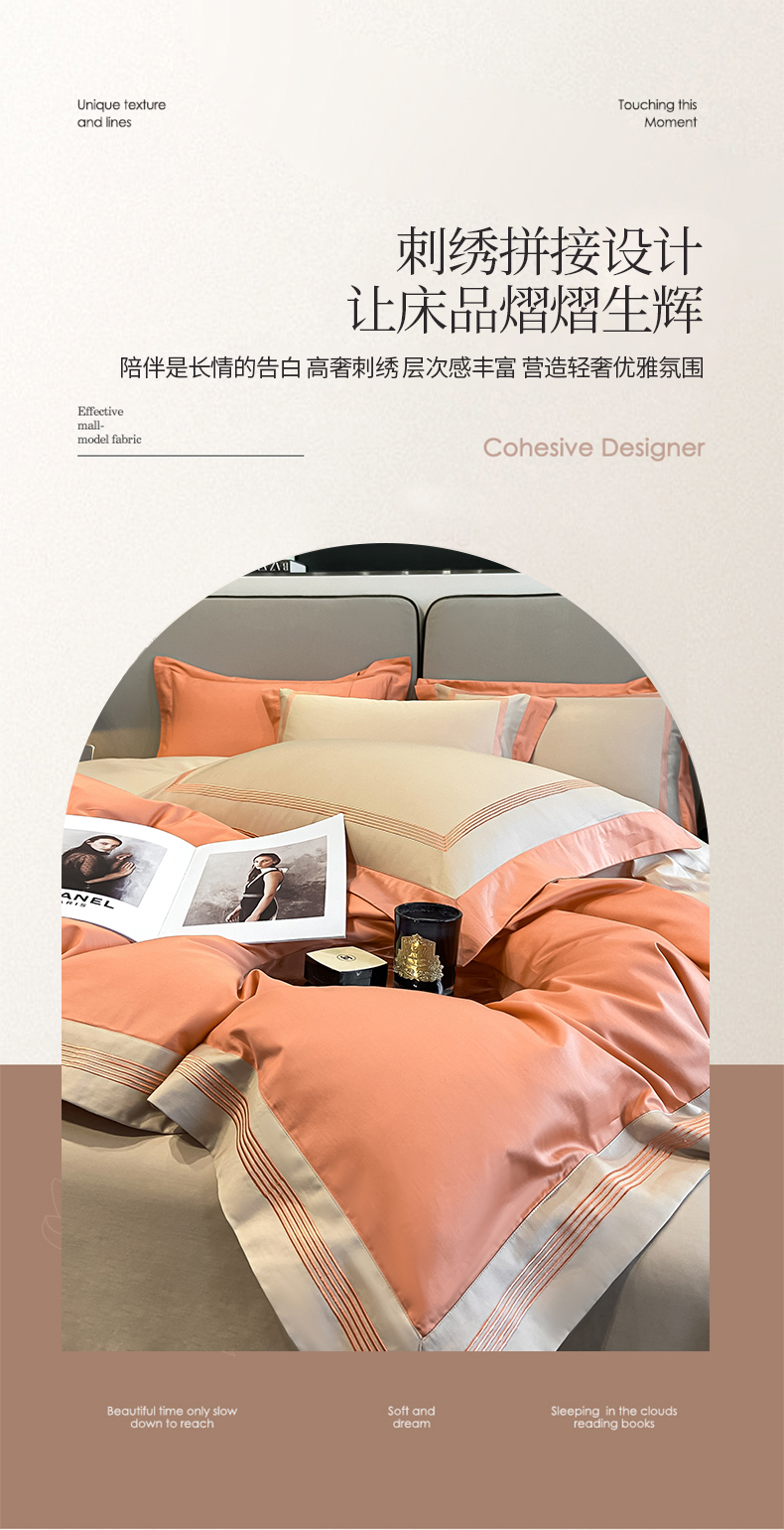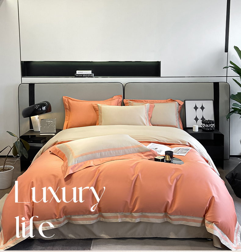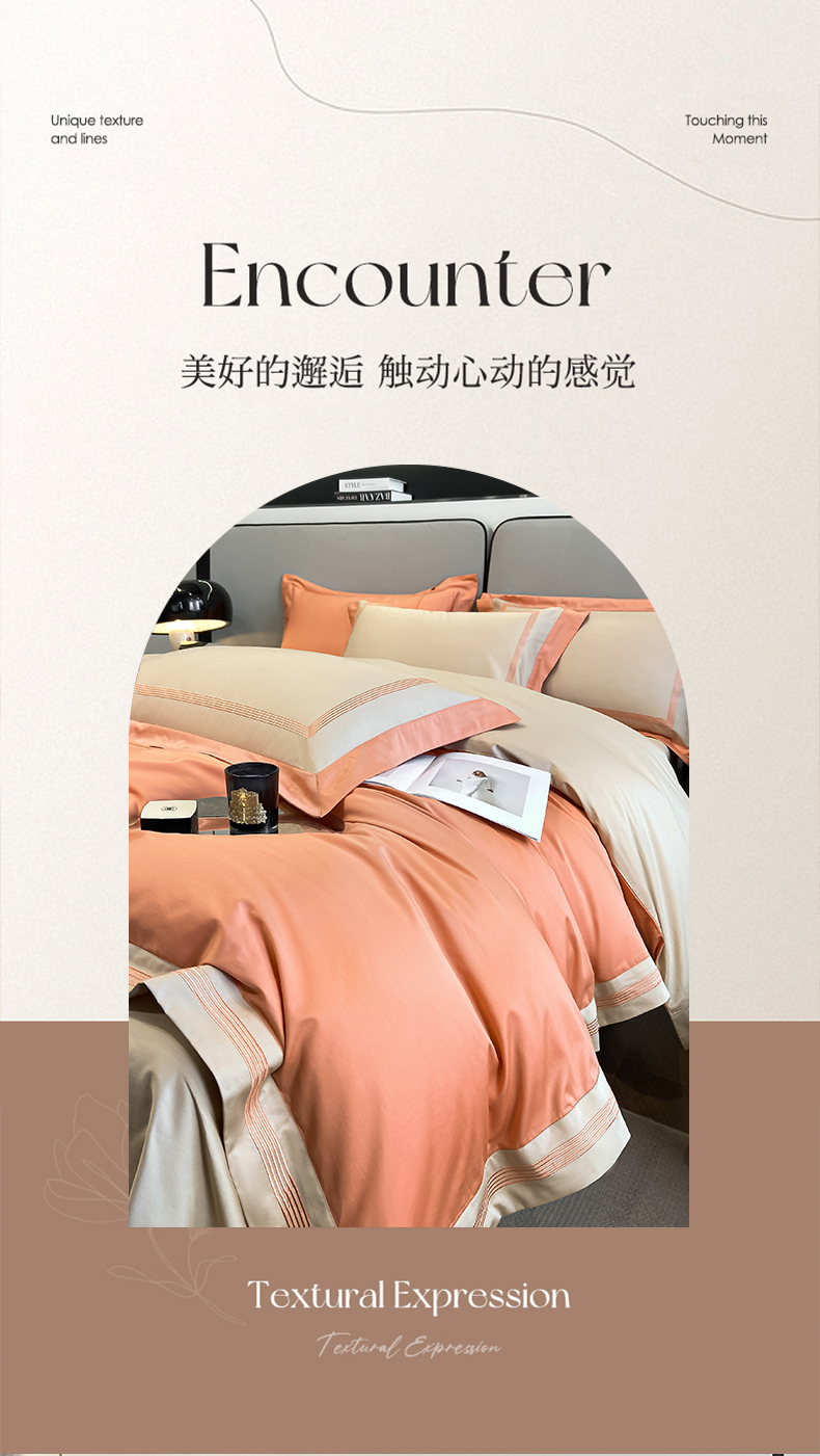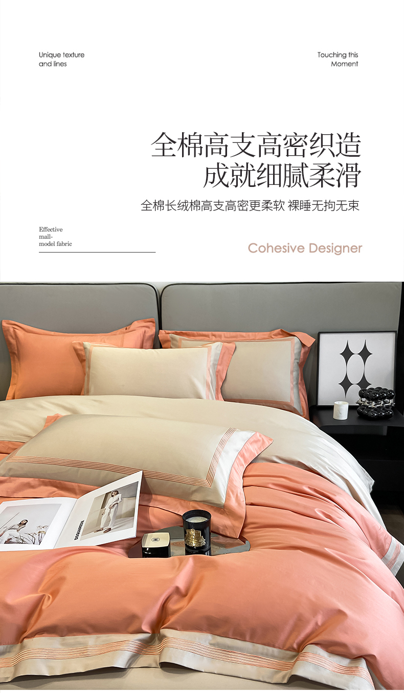商品名称:桃园 2025新款纯棉全棉长绒棉刺绣绣花高端礼盒四件套-莱卡 莱卡爱玛橙