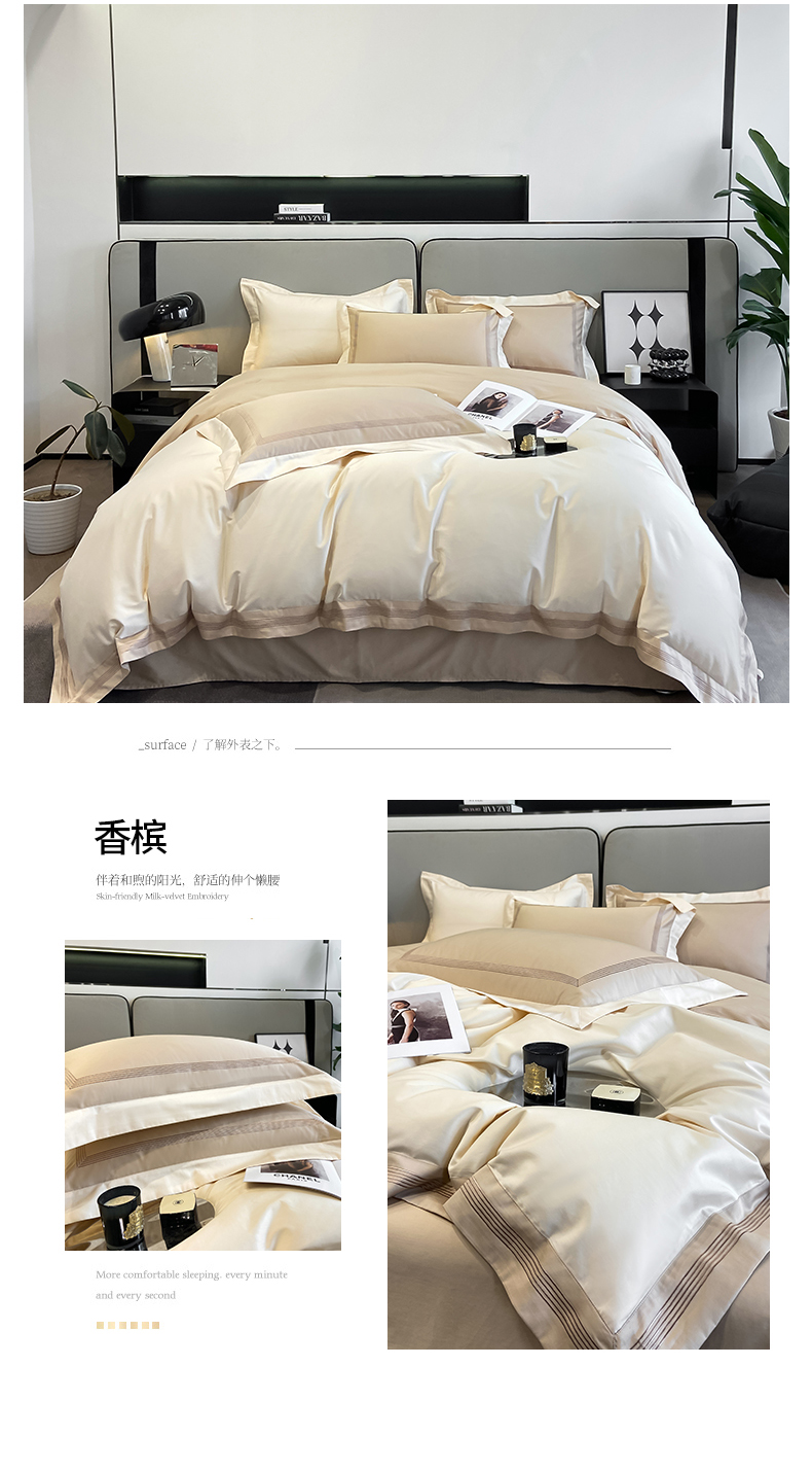 (总)桃园 2025新款全棉长绒棉刺绣绣花四件套-西西里系列,飘蓝,轻奢粉,绅士灰,香槟