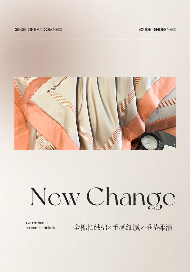桃园 2025新款纯棉全棉长绒棉刺绣绣花高端礼盒四件套-莱卡 莱卡爱玛橙
