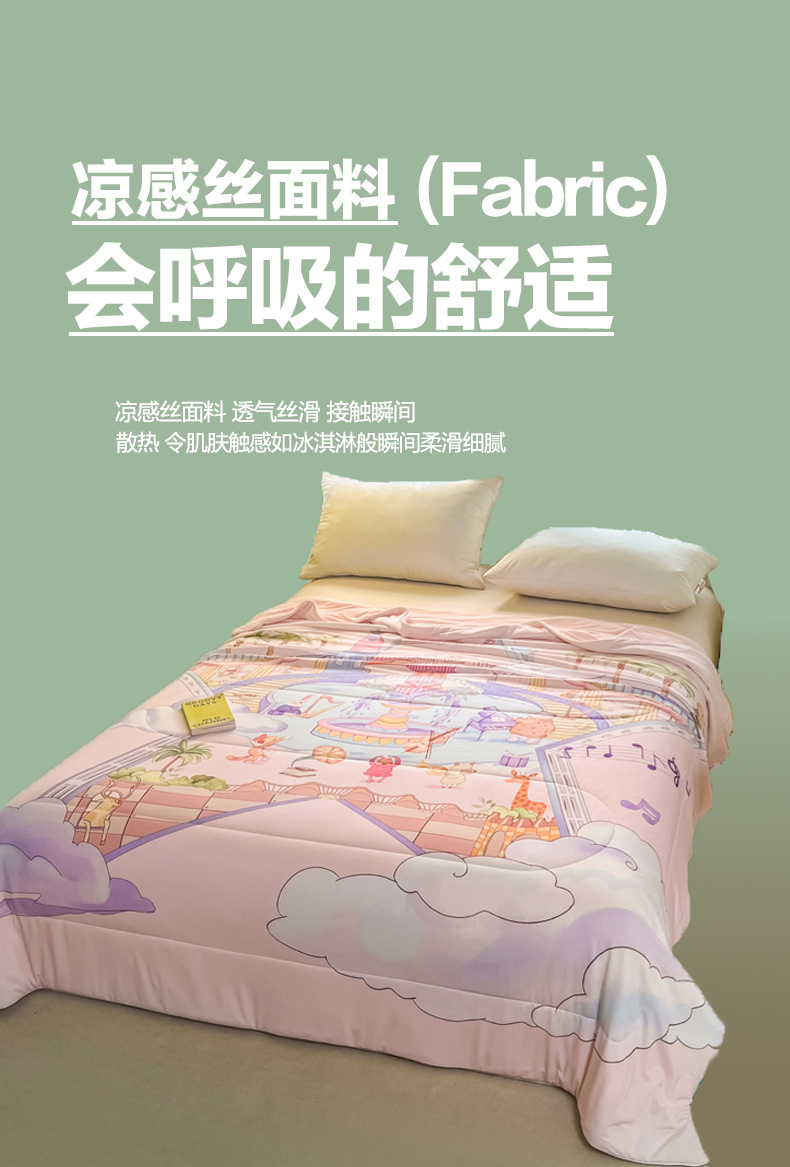 商品名称:大世界被王 2025年新款大版印花卡通凉感丝夏被 音乐会-粉