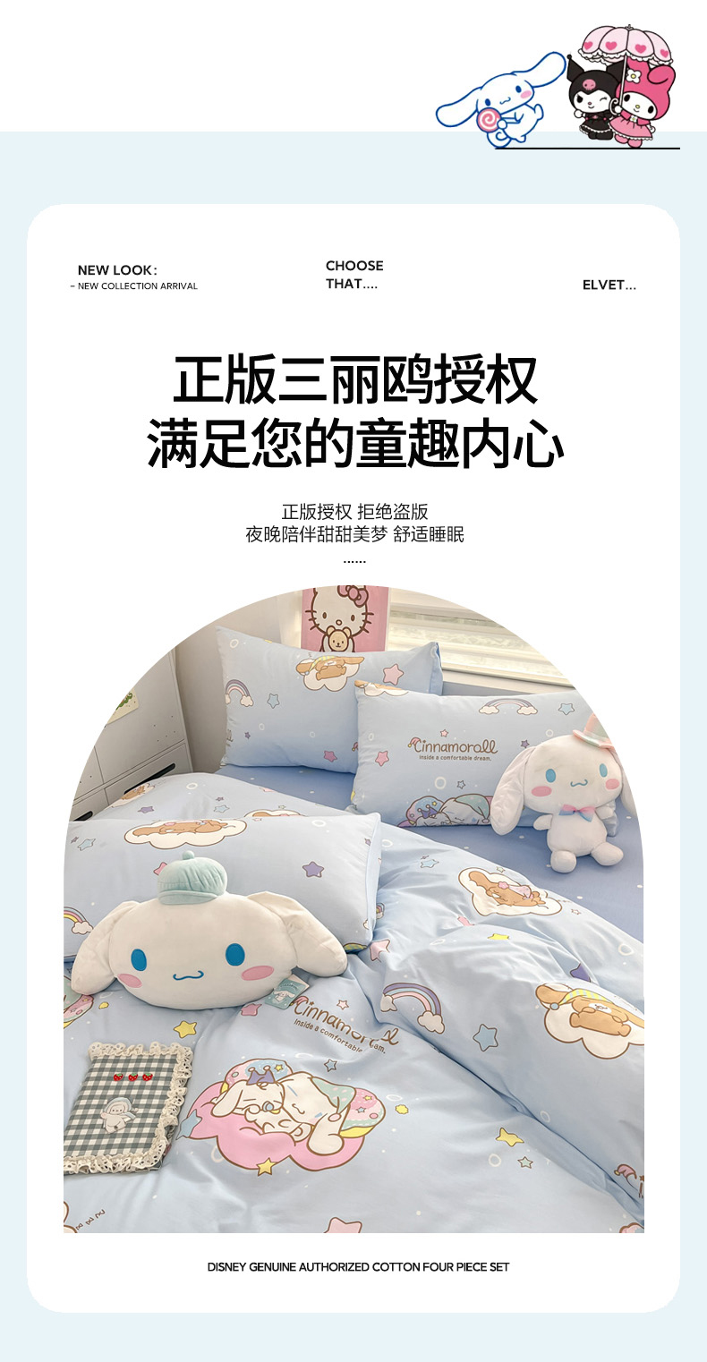 (总)暮思家居 2026新款正版授权三丽鸥全棉纯棉四件套系列-第一批,果果凯蒂,巴库库洛米,宝贝kt,冰淇淋玉贵狗,波点KT,雏菊KT,点点美乐蒂,点点玉桂狗,电话凯蒂,都市凯蒂,粉格美乐蒂,告白KT猫,格子库洛米,公主KT,乖巧KT,黑白帕恰狗,红格凯蒂,蝴蝶结大耳狗,蝴蝶结美乐蒂,焦糖布丁狗,开心凯蒂,凯蒂乐园,可爱凯蒂,可可布丁狗,可可美乐蒂,库洛米宝贝,库洛米糖果,蓝色玉贵狗,蘑菇凯蒂,奶牛大耳狗,奶牛凯蒂,气球库洛米,汽车库洛米,圈圈美乐蒂,少女凯蒂,糖果KT,甜甜凯蒂,甜甜库洛米,甜筒凯蒂,甜心KT,晚安大耳狗,小兔美乐蒂,星星玉桂狗,洋娃娃美乐蒂,樱桃凯蒂,游乐园大耳狗,元气美乐蒂,云朵大耳狗,运动凯蒂