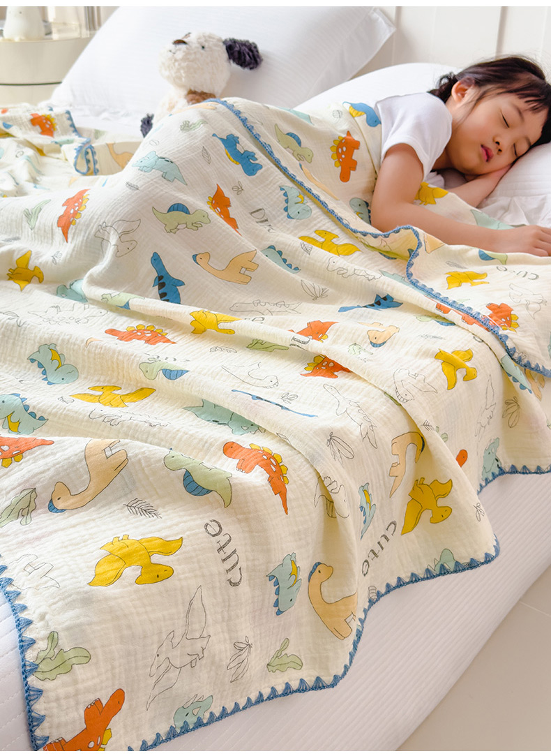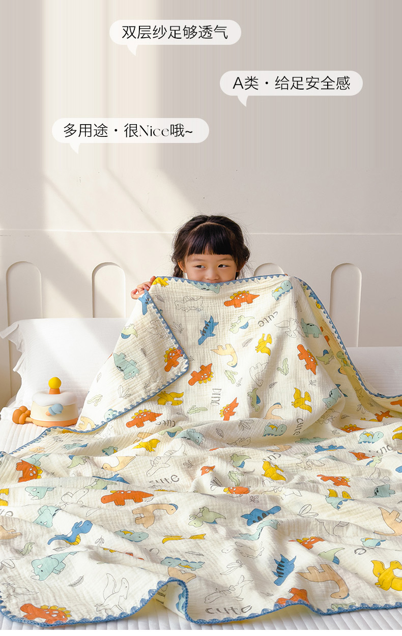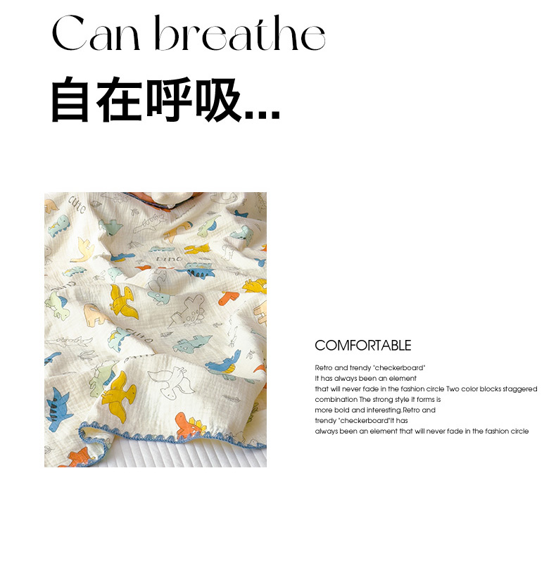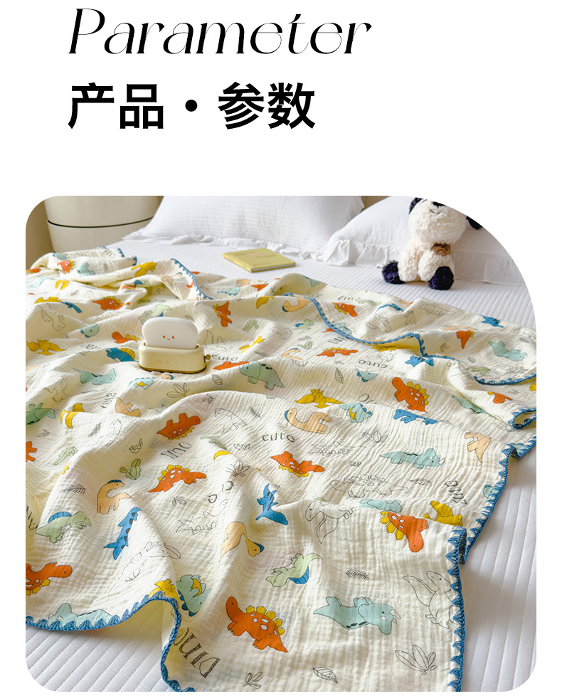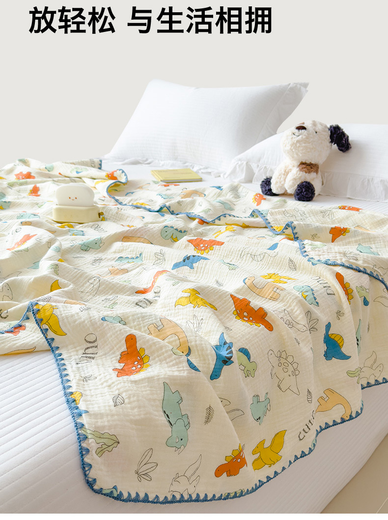 商品名称:兄弟坊 2025全棉抗菌皱皱双层纱夏被午睡毯盖毯空调毯夏凉被沙发毯 皱皱纱-恐龙岛